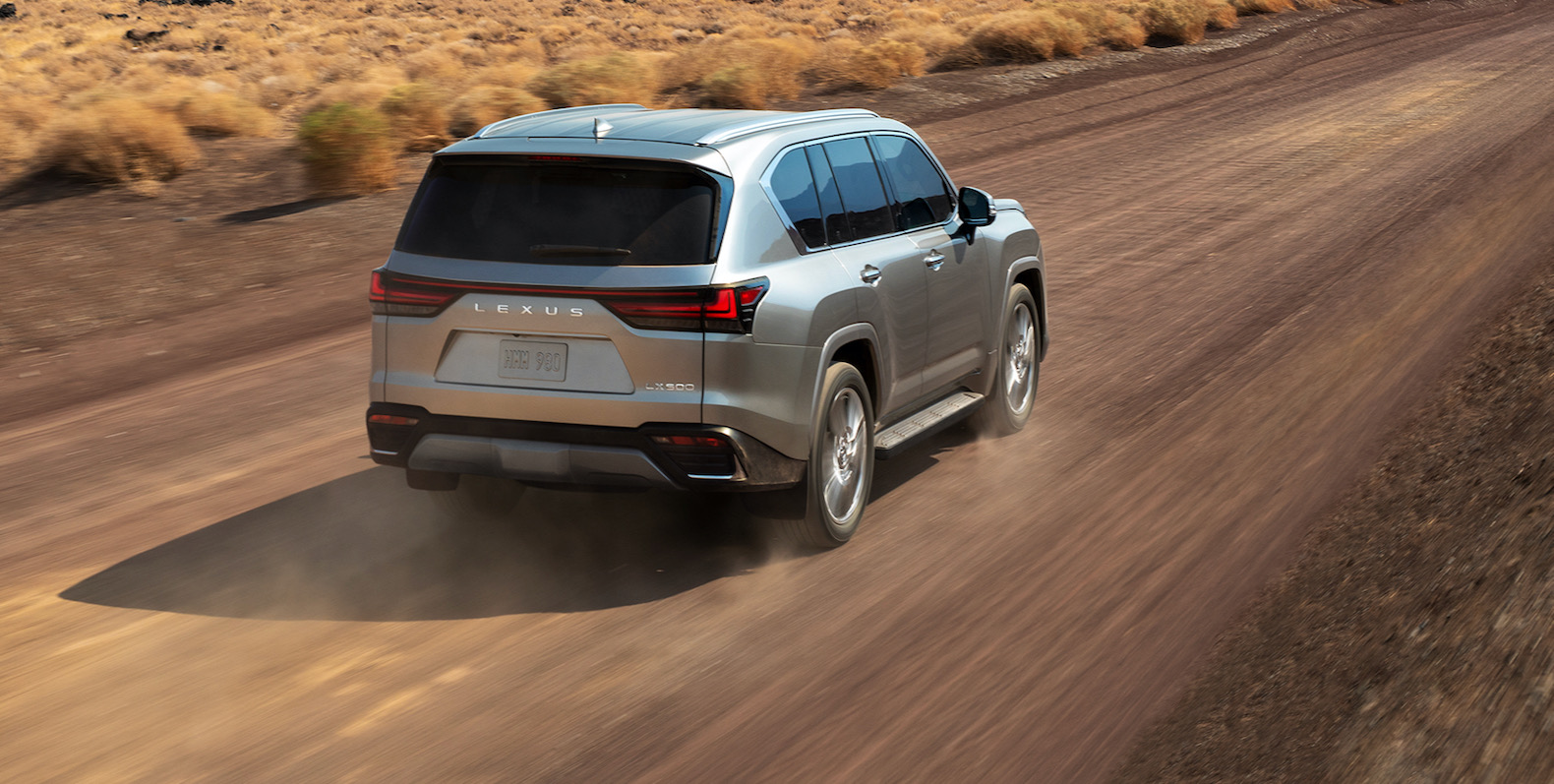 Compared to its predecessor, the LX 600 is 441 pounds lighter and chassis rigidity has increased 20 percent. At the front there’s a double-wishbone suspension, while the rear gets a four-link suspension. Lexus says that it moved the rear shocks to the outside of the rear control arms to improve its driving comfort.