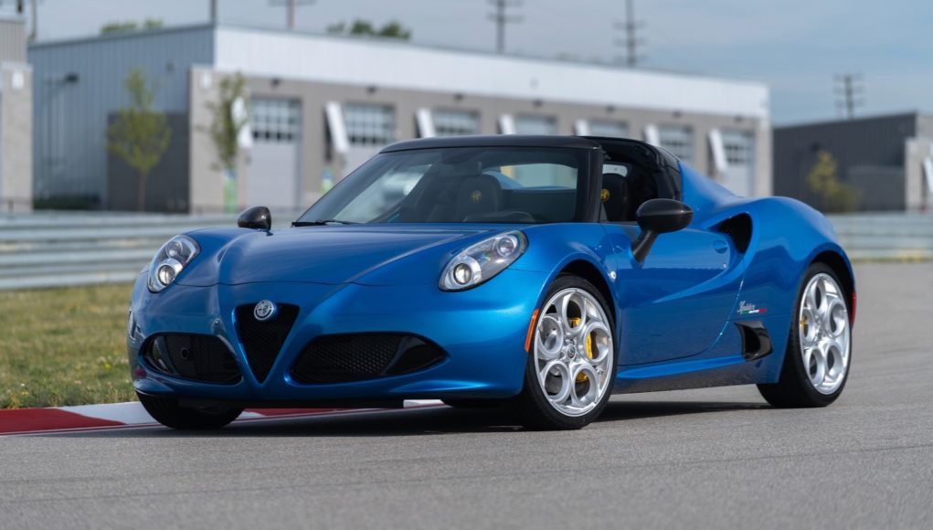 The 4C Spider Italia is powered by a 1.75-liter turbocharged four-cylinder engine with 237 horsepower and 258 lb.-ft. of torque that accelerates it from 0-60 mph in 4.1 seconds with a top speed of 160 mph.