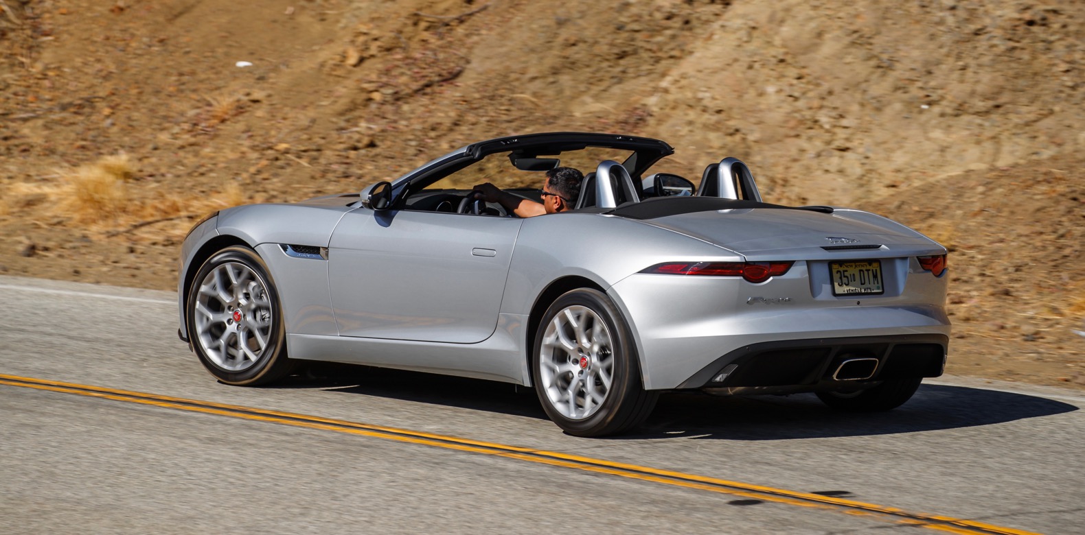 The 2.0-liter four-cylinder engine is rated at 23 mpg city and 30 mpg highway. The 340-hp 3.0-liter V6 is rated at 19/27 mpg, or 18/26 mpg with all-wheel drive. The F-Type R and SVR models with the 5.0-liter supercharged V8 are rated at 16/24 mpg.