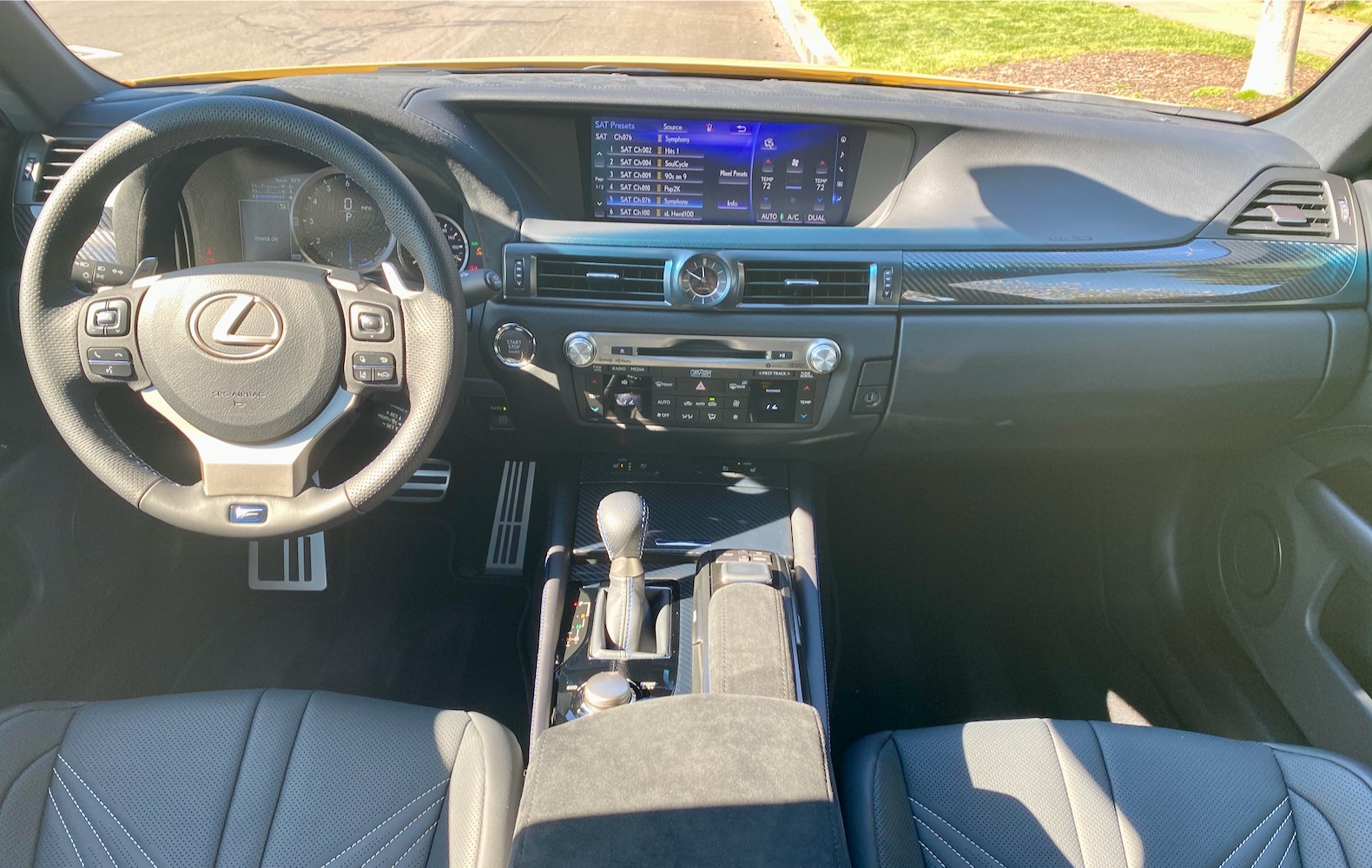 The GS F starts with the GS’s bones, which is a worthy structure, and takes things further with four additional underbody braces. The GS’s double-wishbone front suspension and multi-link rear suspension are upgraded with aluminum links for increased rigidity and less unsprung weight. The geometry is tweaked all around and the bushings and spring rates are all stiffer. The final piece of the puzzle is the Sachs dampers at all four corners. The result? Pull into a driveway at an angle and the stiff structure doesn’t flinch or twist. Roll down broken Midwest pavement and you’ll be keenly aware of every expansion joint that heaved during winter. But this is still a Lexus, and the suspension suffers from no bone-jarring crashes. It’s a firm ride, but completely liveable as a daily driver even in Minnesota. The GS F isn’t softer than its German competitors despite the Lexus badge. The GS F never rose to the top of its class, but it never cost as much as its rivals either. It’s been overshadowed and outgunned by the more-powerful German competition, but it’s interior is superb and its engine offers a more linear and natural feel than the turbocharged V-8s from Germany.