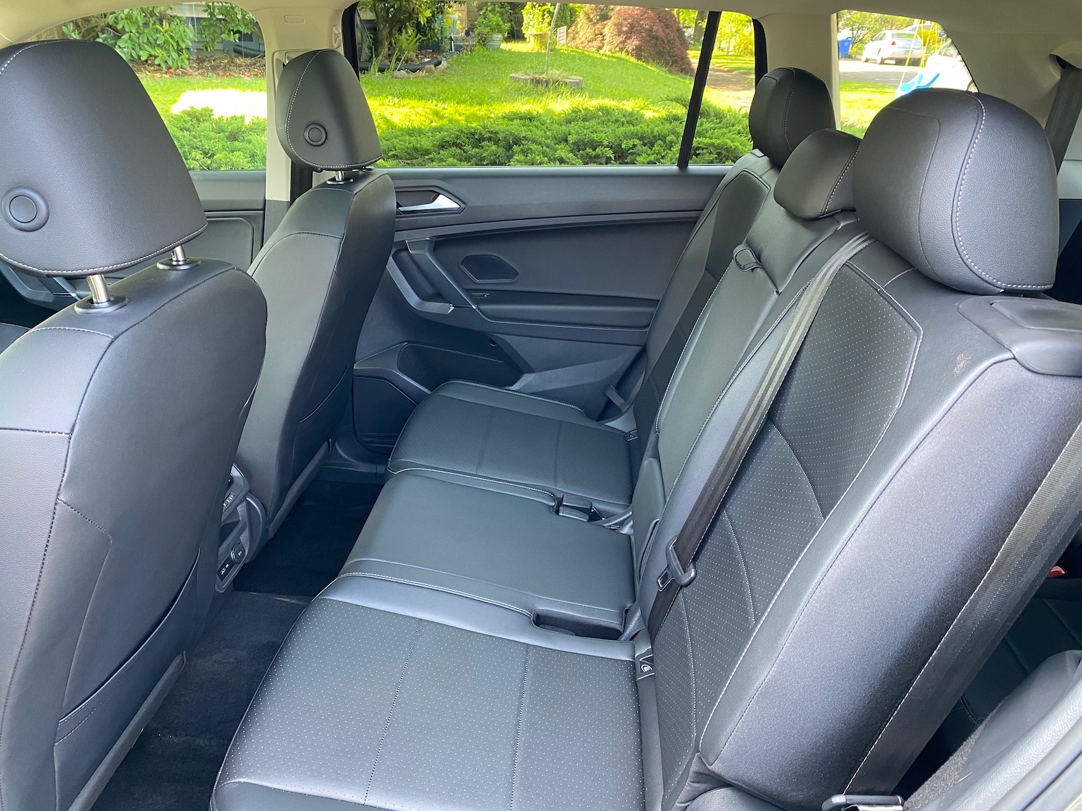 So long as you’re not shoehorned into the third row, the 2020 VW Tiguan has a comfortable interior.The front seats are upright and firmly padded, and they sit high enough to afford a commanding view forward. Power controls and seat heaters are optional. Row two slides forward at the tug of a lever or pushes back to open up more or less cargo space or leg room. Five-seat Tiguan’s can lug nearly 38 cubic feet of cargo with the second row upright and slid forward. The optional third row, mandatory with front-wheel drive, steals about 2.5 cubic feet, a small price to pay for flexibility. Fold row two flat and maximum cargo capacity swells to 73.5 cubic feet in five-seaters and 65.7 cubes in seven-seaters.