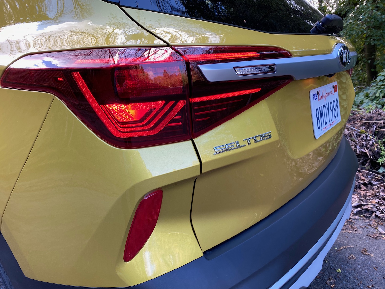 With a unique European flair, the 2021 Seltos is a handsome small crossover. Striking out in a new direction, the 2021 Kia Seltos bears only a small resemblance in the nose and grille to the rest of Kia’s crossovers and the rest of the lineup. Its European flair and available contrast roof are handsome from far away. The nose and hood are deeply creased, with headlights that stretch across the fenders and bookend the grille. The honeycomb grille is a good look for the Seltos and daytime running lights sit directly underneath the thin, horizontal headlights. Vertical fog lights sit low on the front bumper are connected with a body-colored bumper that makes the Seltos look tall. Around the sides, the Seltos’ continental look is underscored by a “floating” roof and chrome strip underneath the windows. We can see a lot of Volvo’s XC40 in the Seltos; that’s a good thing. A floating chrome strip connects the two rear taillights and chrome wraps around the lower bumper to simulate dual exhaust ports.