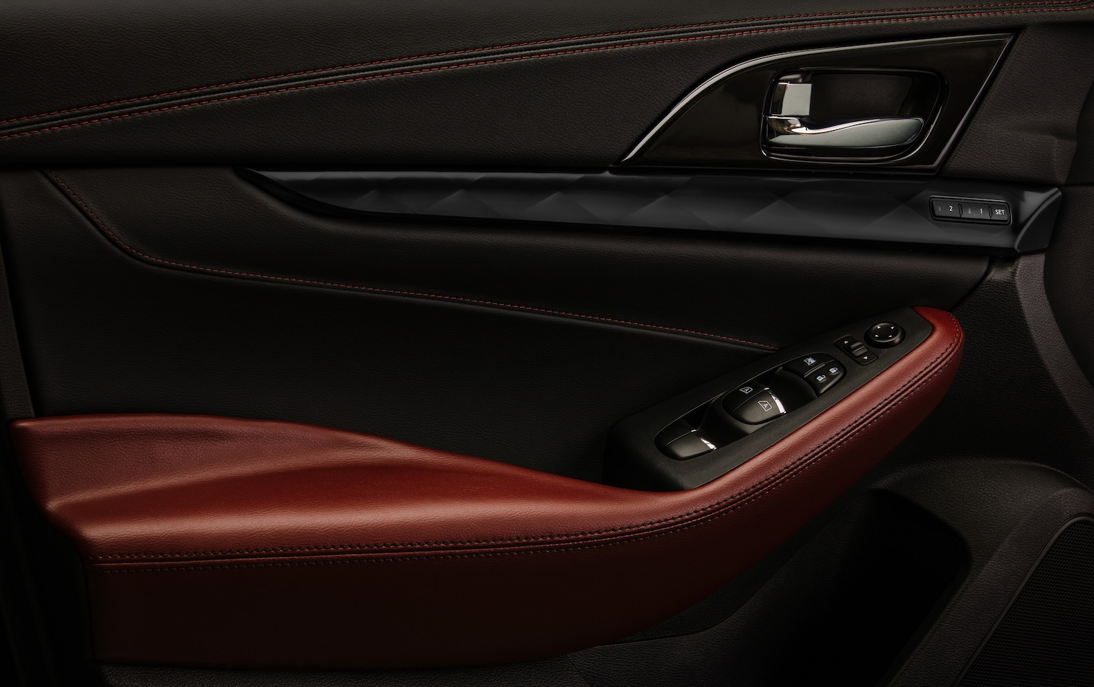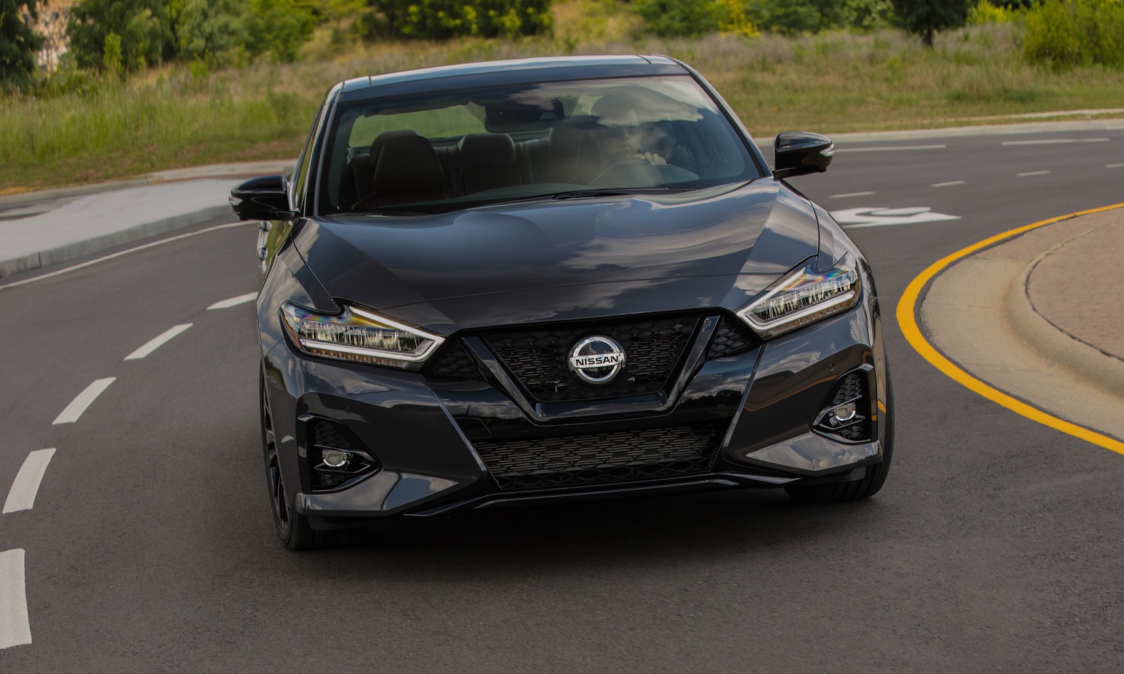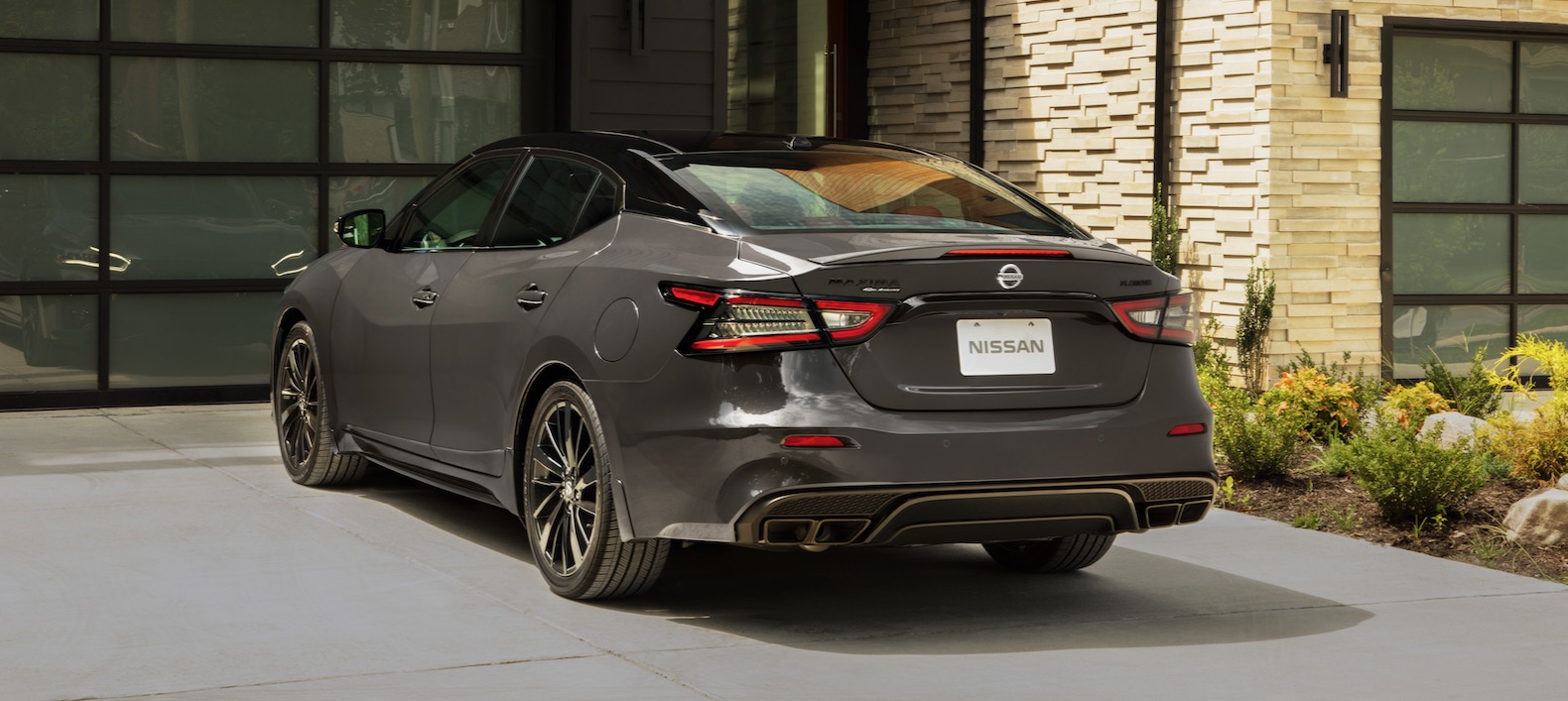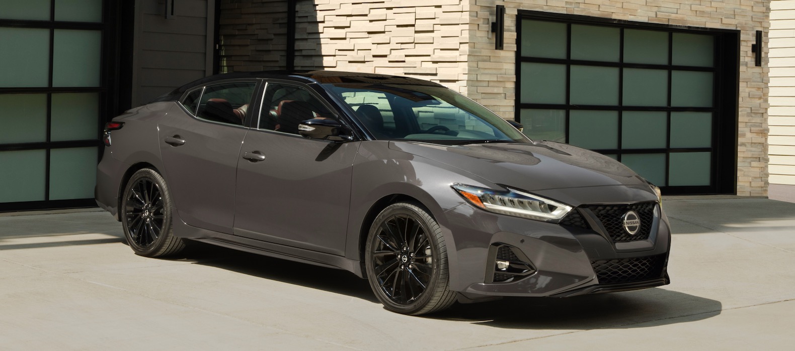 The limited production Maxima builds on the Platinum trim level and comes exclusively in Ruby Slate Gray Pearl with a black roof and 19-inch gloss black wheels. The exterior also gets black trim and badges, plus black exhaust finishers.