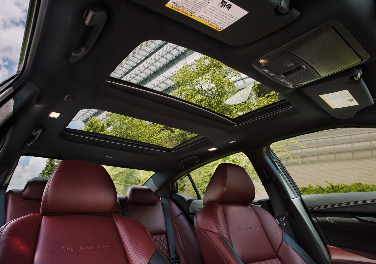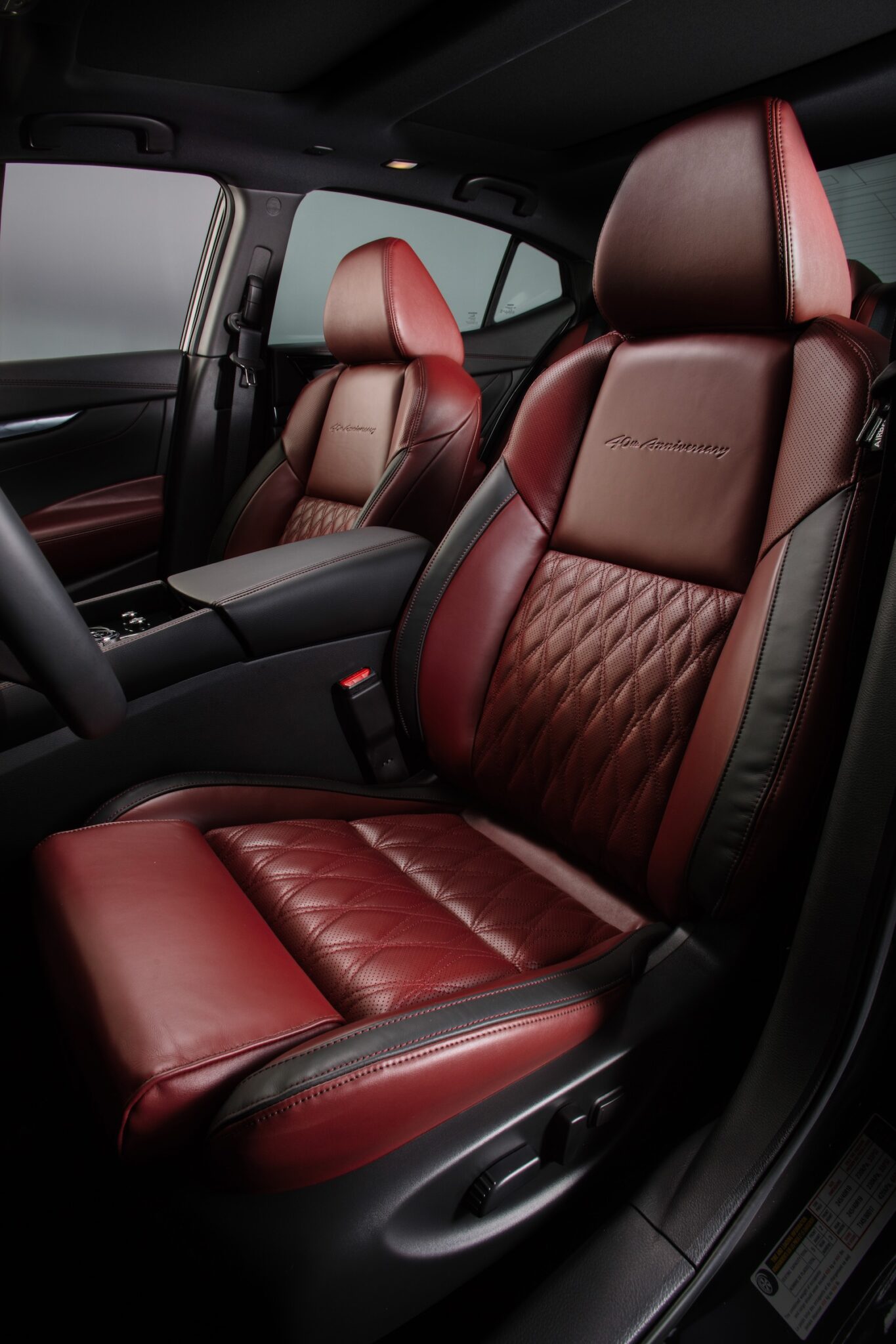Inside the seats are wrapped in red semi-aniline leather with 40th Anniversary embossing. Theres also red contrast stitching, heated rear seats, Satin Dark Chrome faceted finishers and white analog gauges.