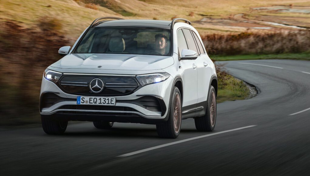 The EQB 300 4Matic is powered by a dual-motor all-wheel-drive powertrain with 225 horsepower and a 66.5-kWh battery pack that gives it about 260 miles of range on the European WLTP cycle. The EPA estimates have not been announced.