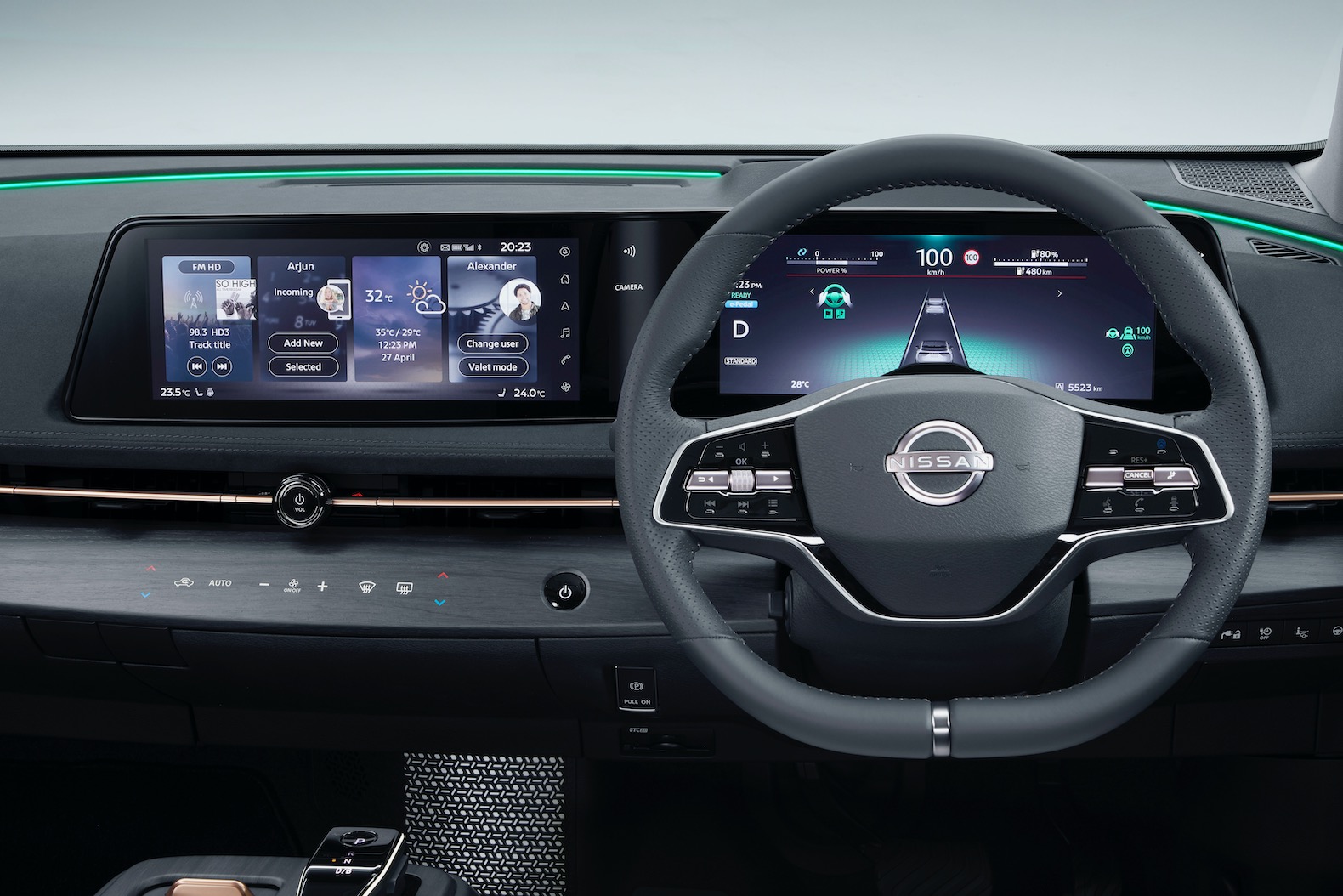 Inside the 2022 Ariya has five seats and 16.5 cubic feet of cargo space, which drops to 14.6 cubic feet if you choose the AWD version. In the front of the driver there are two 12.3-inch displays and wireless Apple CarPlay and Android Auto. Amazon Alexa is also included.