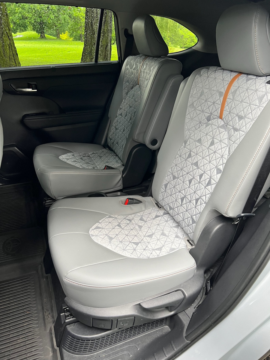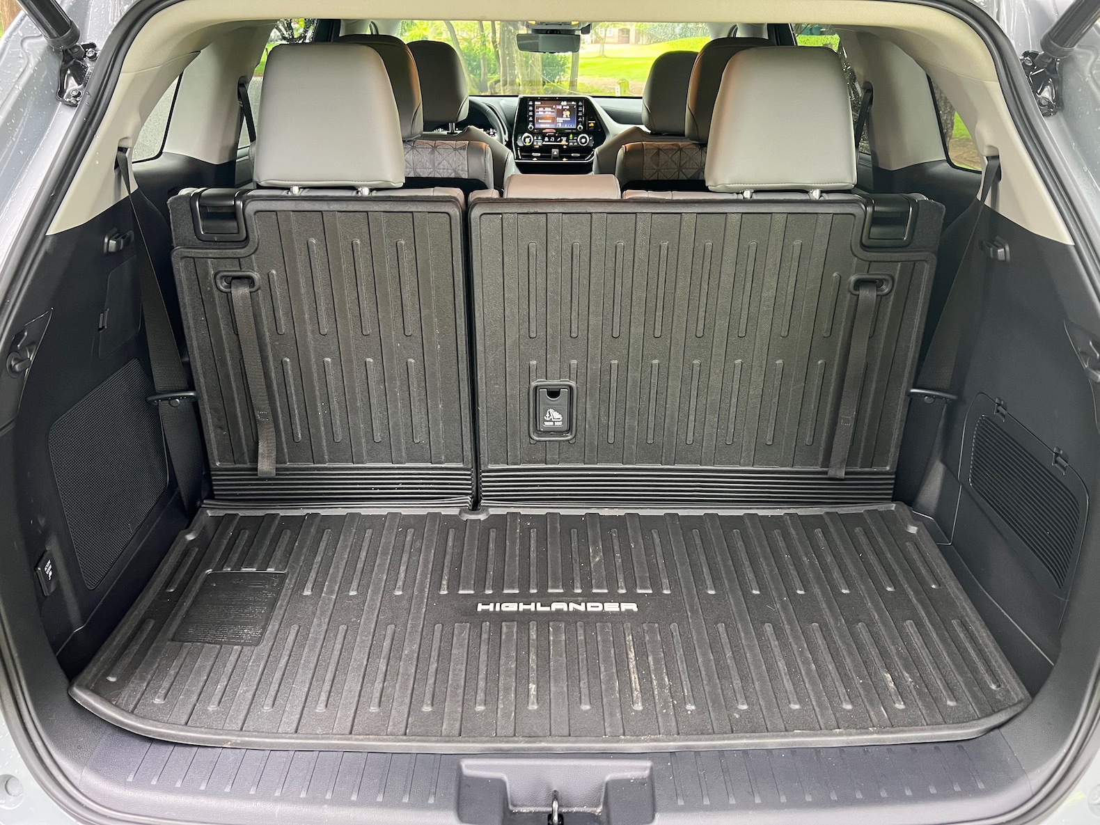 Row two has 41.1 inches of leg room and well-sculpted cushions, which makes the Highlander generously sized for most passengers. The bench can be swapped for captain’s chairs; in either case, the seats can move up for easier third-row access.