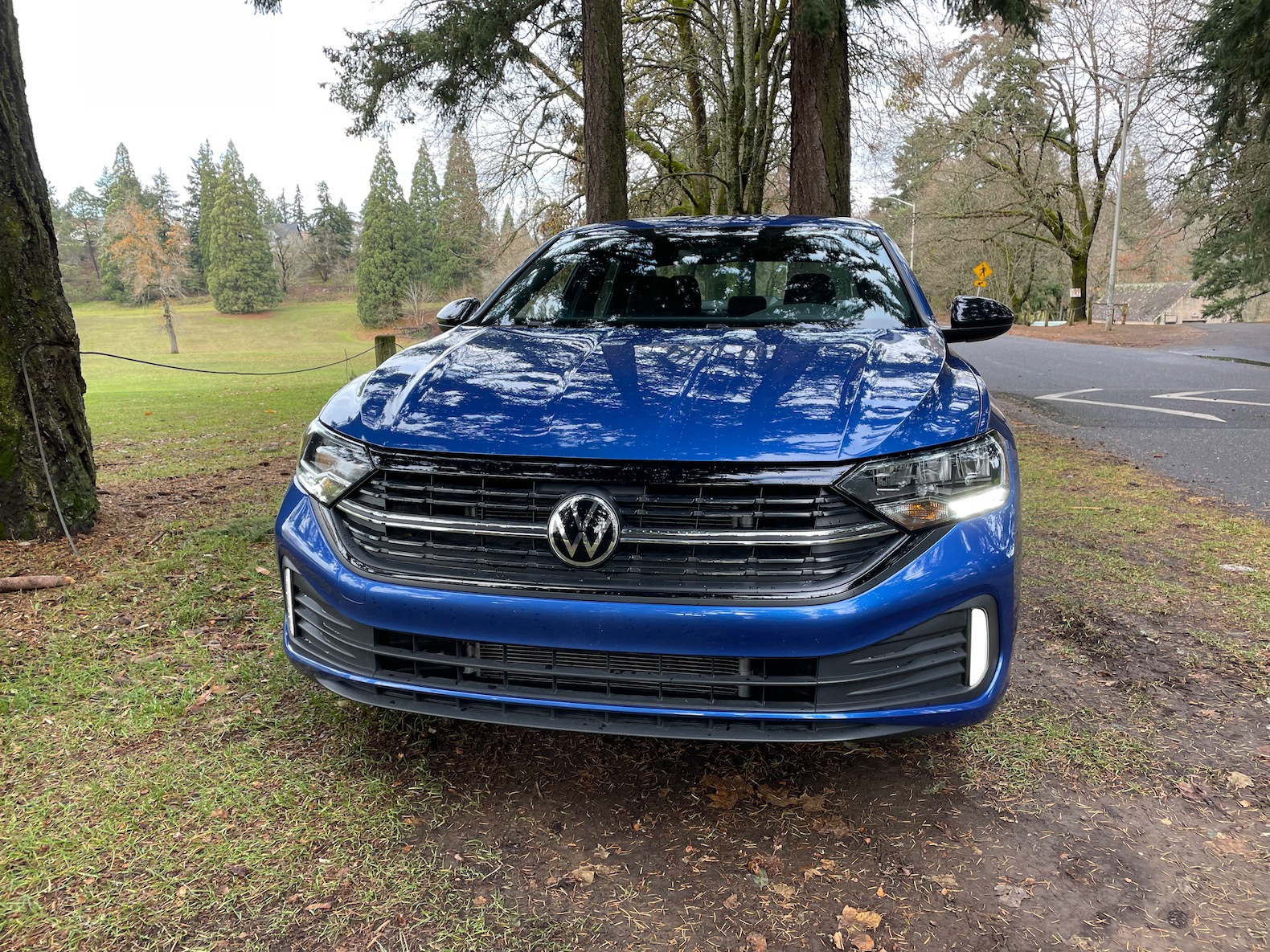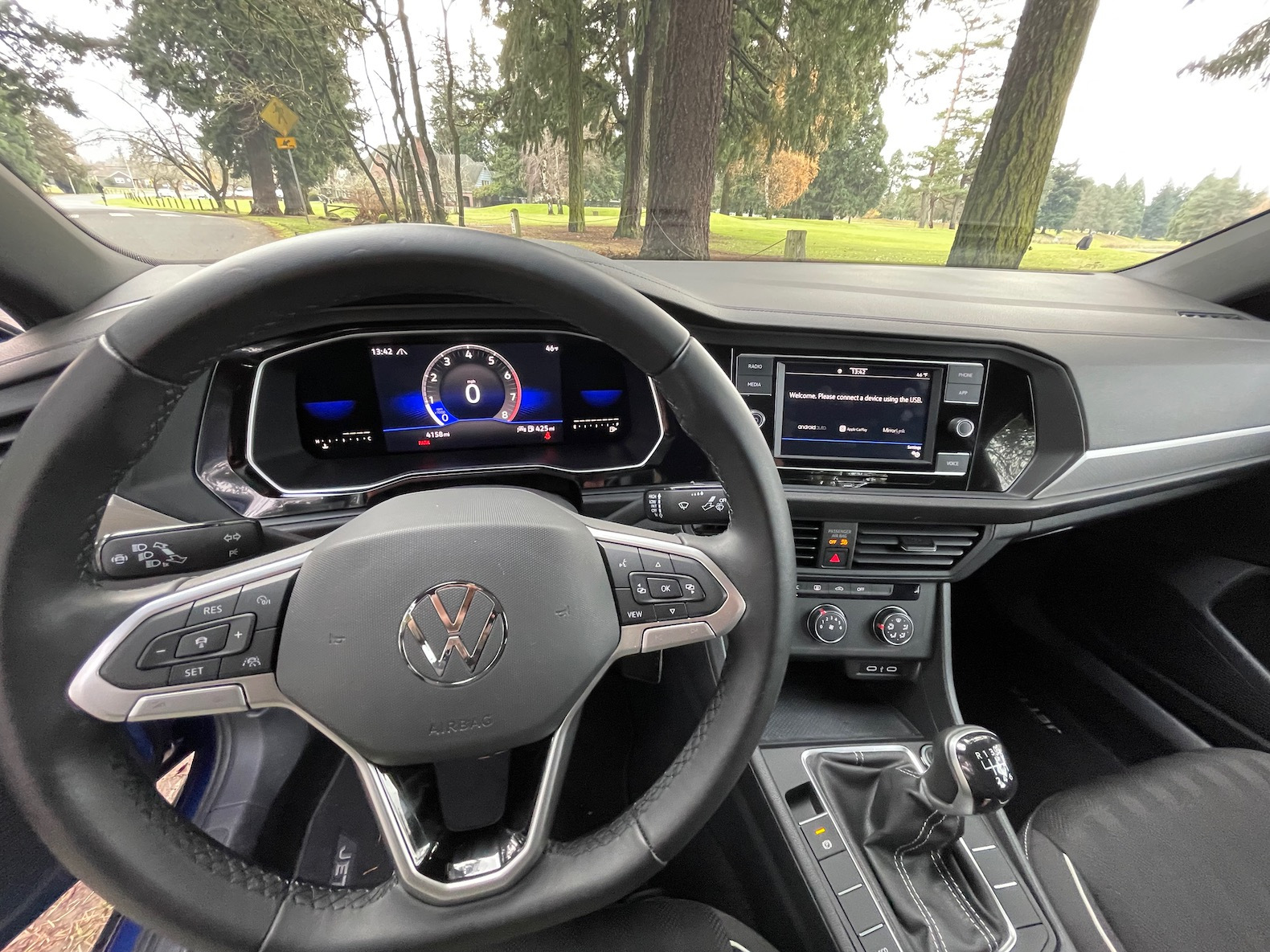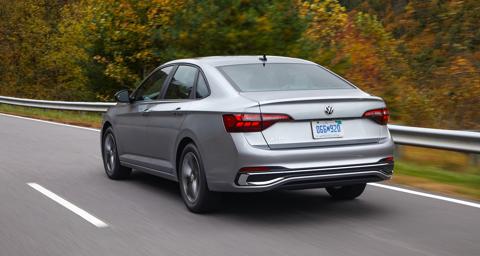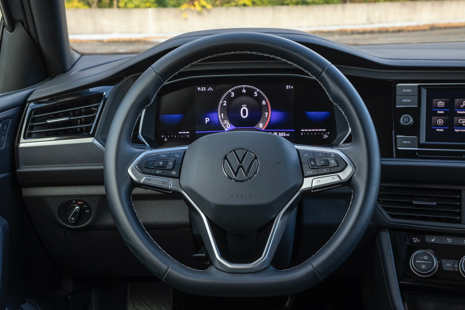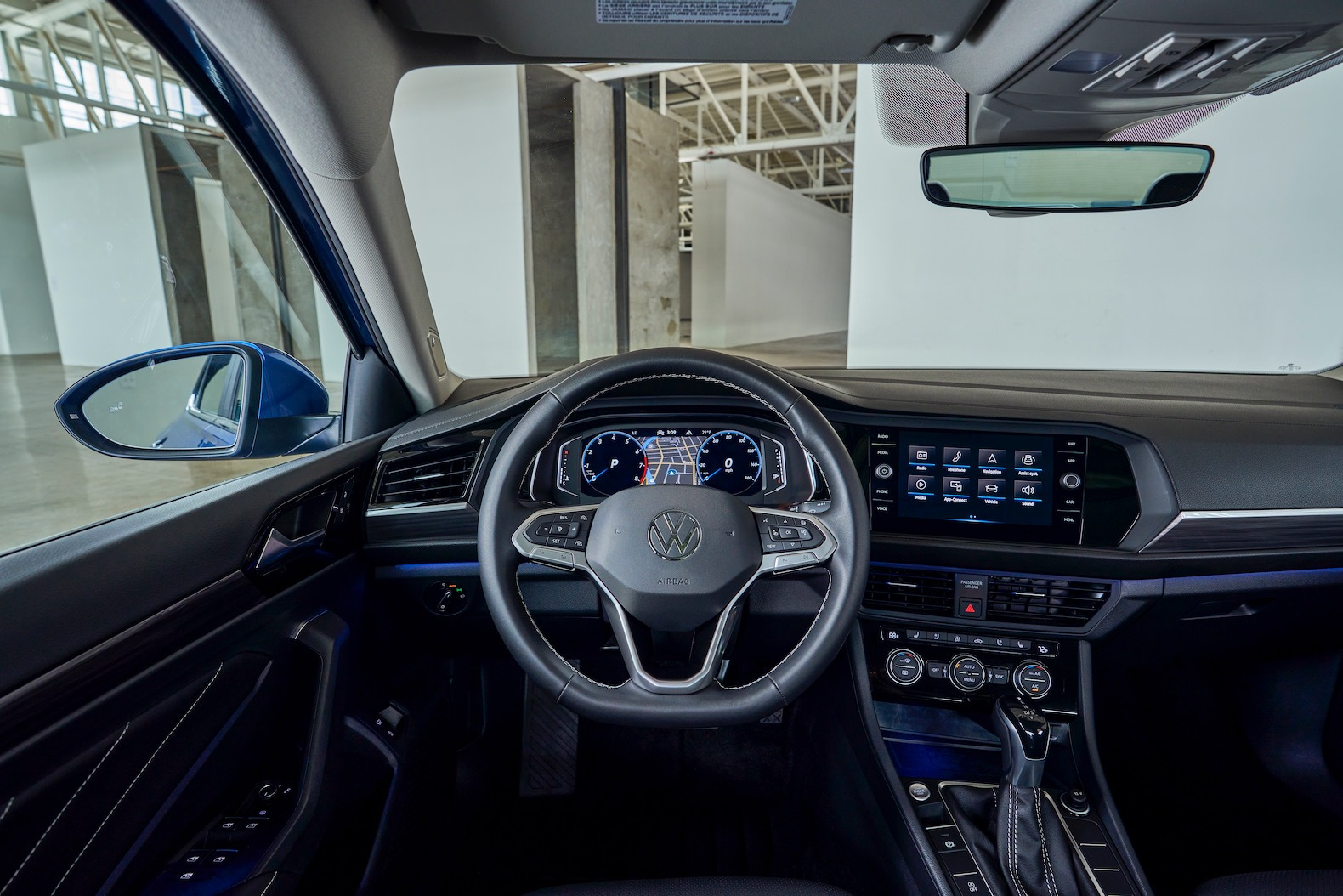 Headlights limit night vision, but the Jetta holds up well in crash tests. LED lights and standard automatic emergency braking with pedestrian detection, as well as blind-spot monitors shine a safety light on the 2022 Jetta. But the base headlights failed to pass muster with the IIHS, which rated its LEDs at “Poor,” thus precluding it from a Top Safety Pick. It aced the six crash tests, however, and we expect the NHTSA’s five-star crash rating to carry over. Unlike even some luxury brands, Volkswagen makes its full suite of driver-assist features including adaptive cruise control and active lane control available even on base models with an automatic transmission for $955.
