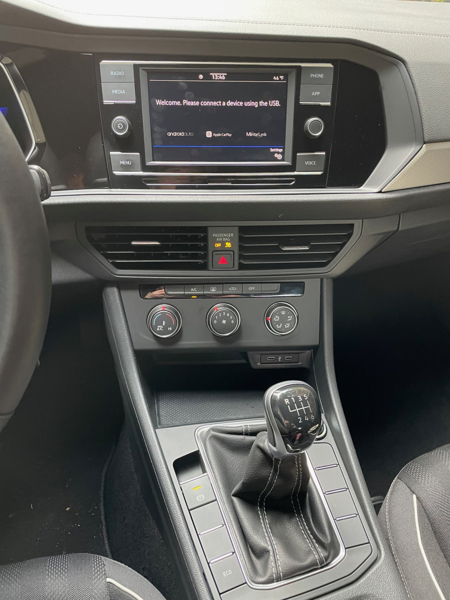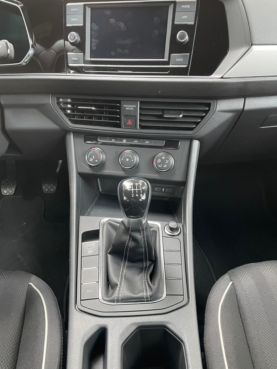 Inside, the Jetta tilts its tiny touchscreen toward the driver, but it makes no pretense about its entry-level status. Thin, dull plastics cover most visual surfaces, and the upholstery is positively proletariat. Climate dials and buttons are a welcome relief from too much touchscreen, but the current 6.5-inch setup in most Jettas feels like an afterthought. The button blanks flanking the shifter feels like we’re missing things.