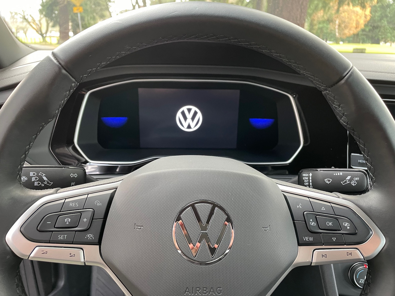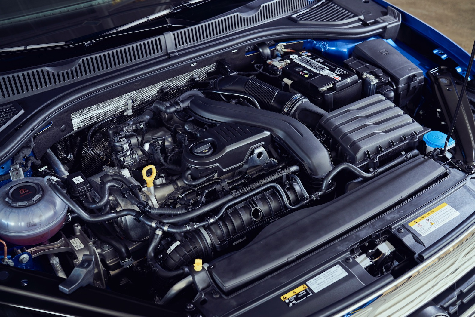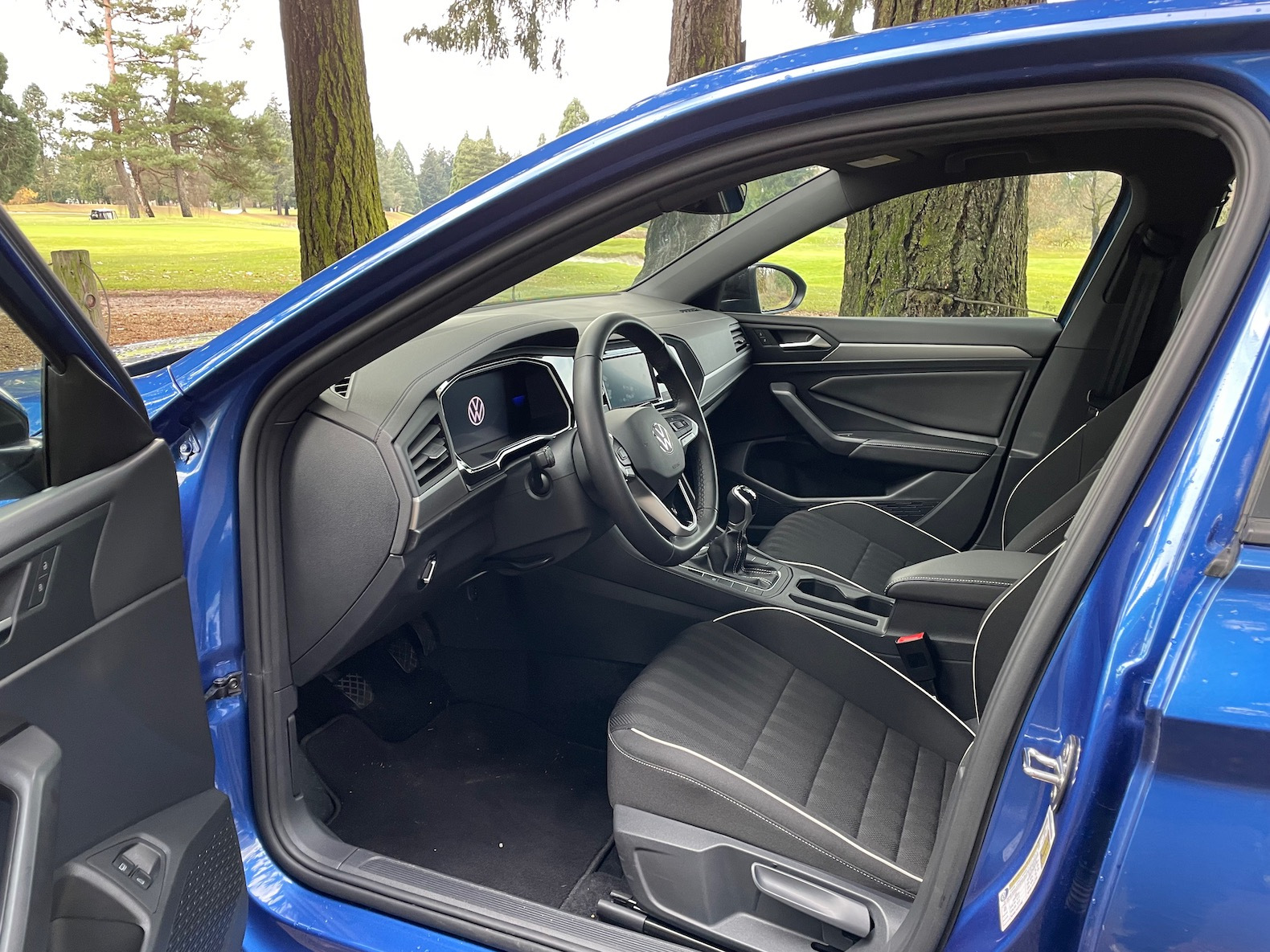 For 2022, not too much is new on the outside except new front and rear lower bumpers, as well as standard LEDs on the headlights, taillights, and daytime running lights. Inside there’s a standard 8.0-inch digital instrument cluster, contrast stitching on the doors and armrests, and new cloth or leather seat patterns. VW swaps out engines for a 1.5-liter turbo-4 used in the VW Taos small crossover. A new Sport trim steps above the S and below SE and SEL trims to add flair and fun on a budget, with 17-inch alloy wheels, an electronic limited-slip front differential, and black trim elements.