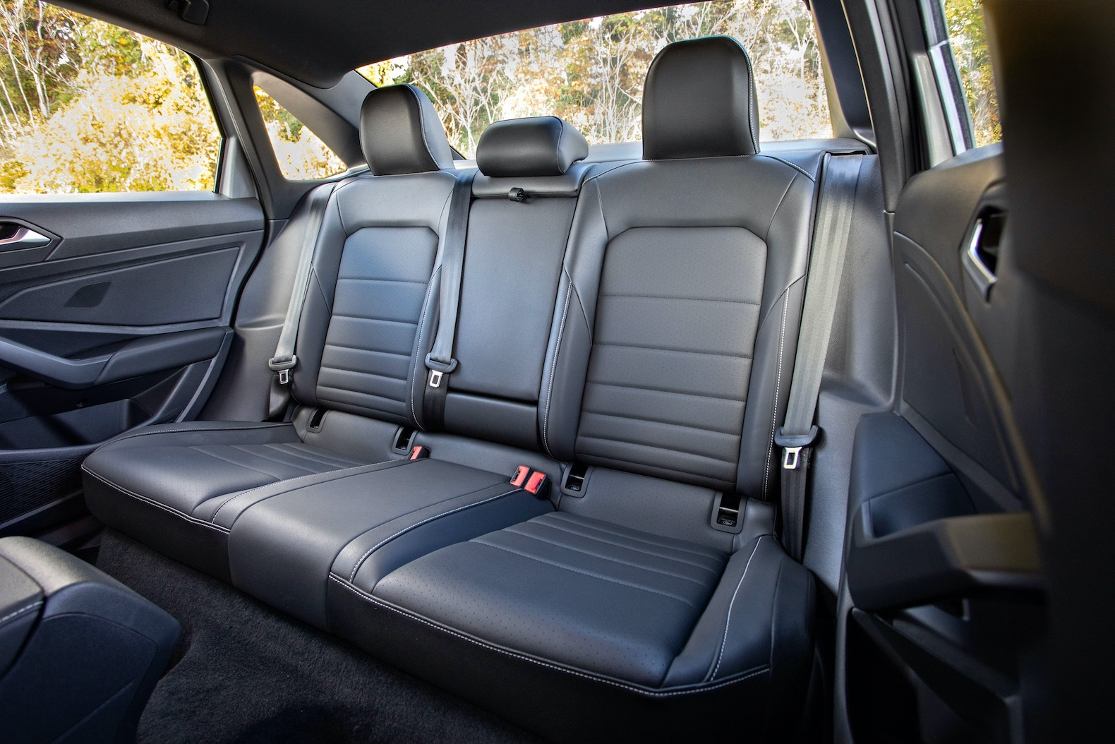 The 2022 Jetta houses 94.7 cubic feet of passenger volume, which is nearly large enough to qualify as a mid-size sedan based on EPA rankings. The new Honda Civic sedan earns that larger class, but the Jetta has nearly the same rear seat roominess. Same as the Civic, the roomy rear seats offer up 37.4 inches of leg room, which tops the compact sedan class. Five collegiate passengers could fit for the road trip home for winter break, but they should travel light with only 14.1 cubic feet of trunk space. The 60/40-split rear seats fold down for greater cargo flexibility.