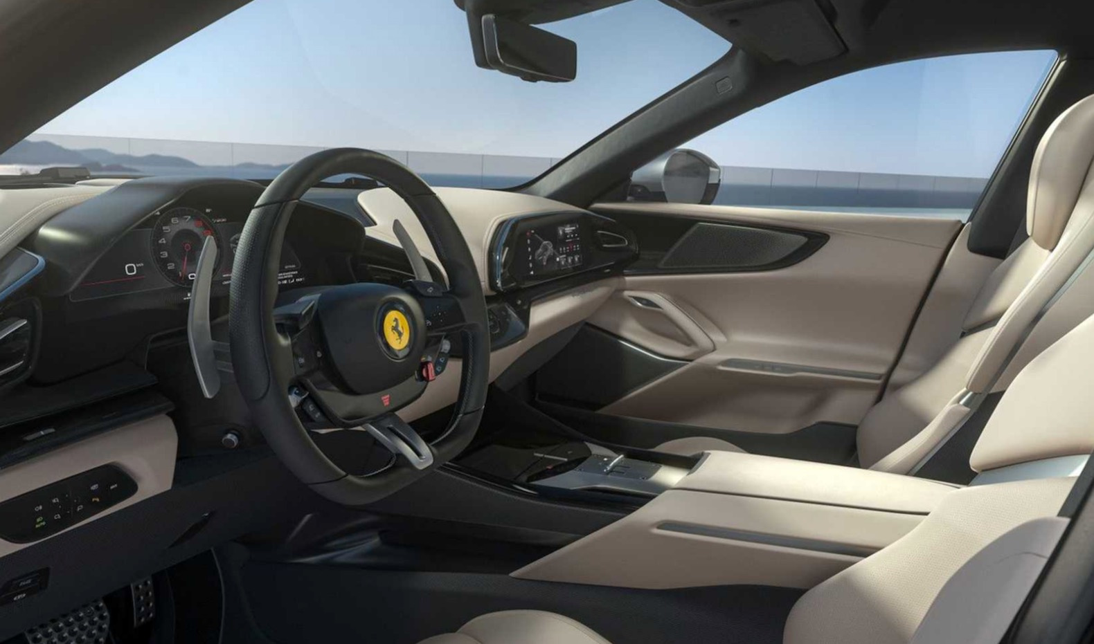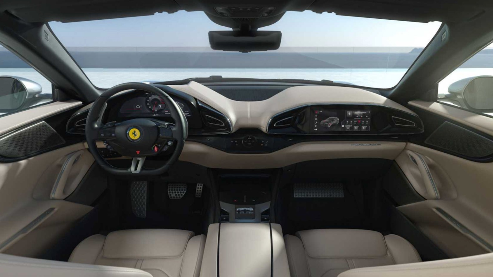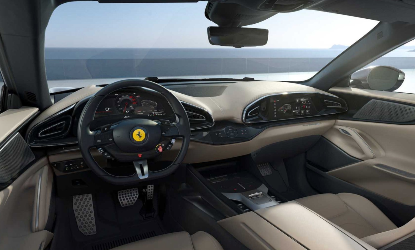 It also comes with rear-wheel steering and a new suspension technology, which uses active spool-valve dampers from Multimatic. The suspension eliminates the need for anti-roll bars, since there’s an electric motor at each wheel that can apply force to the dampers. The suspension can also lower the car by 0.4 inches, while the Purosangue has 7.2 inches of ground clearance.