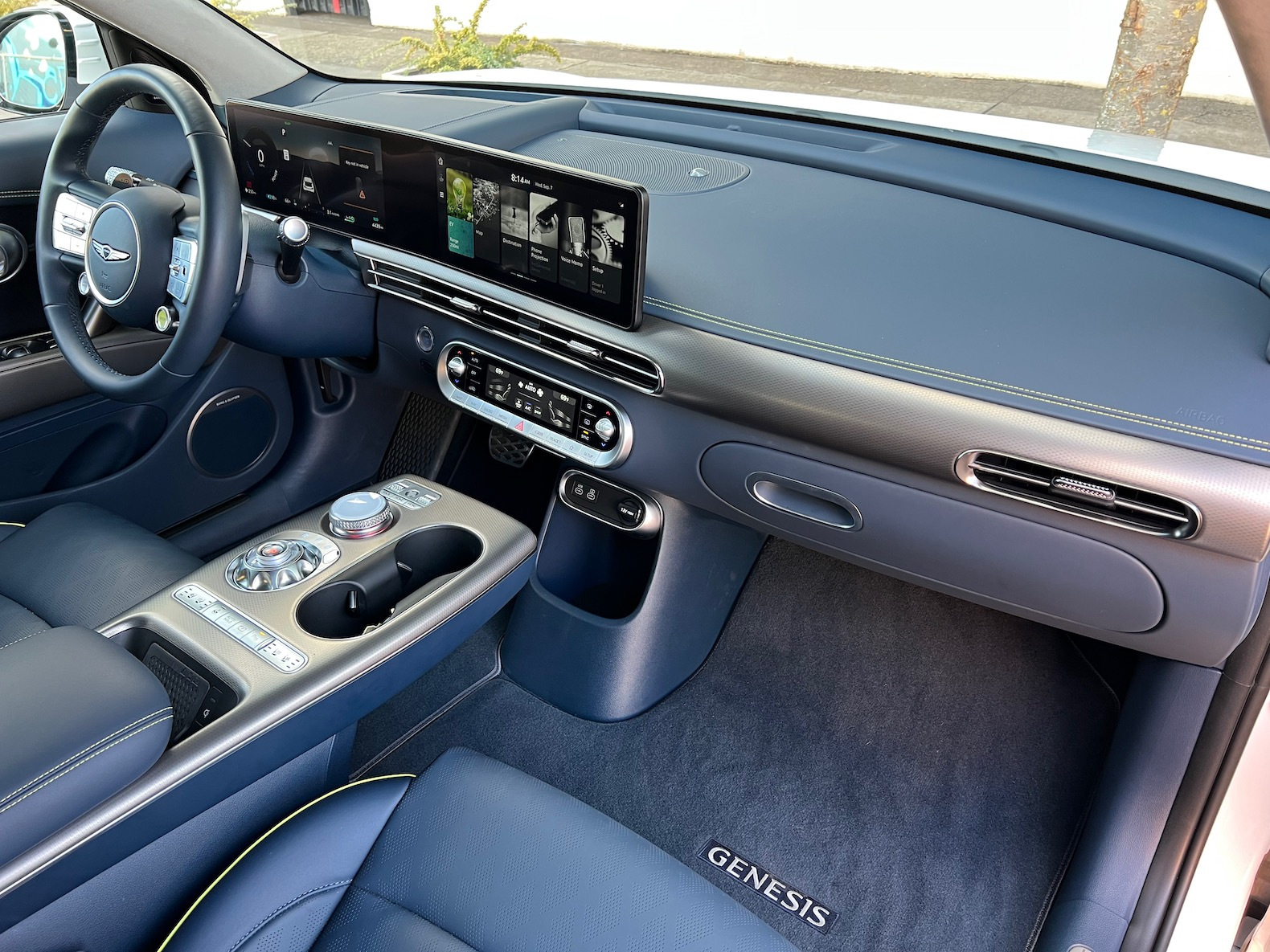 It trails in efficiency as well, averaging 2.8 miles per kwh in Advanced and 2.7 miles per kwh in Performance. Genesis does include three years of 30-minute complimentary charging sessions via Electrify America. That’s plenty of time for quick charging, given the GV60’s 800-volt architecture that allows it to charge at up to 250 kw and go from 10% to 80% in just 18 minutes (when you can find a fast enough charger).