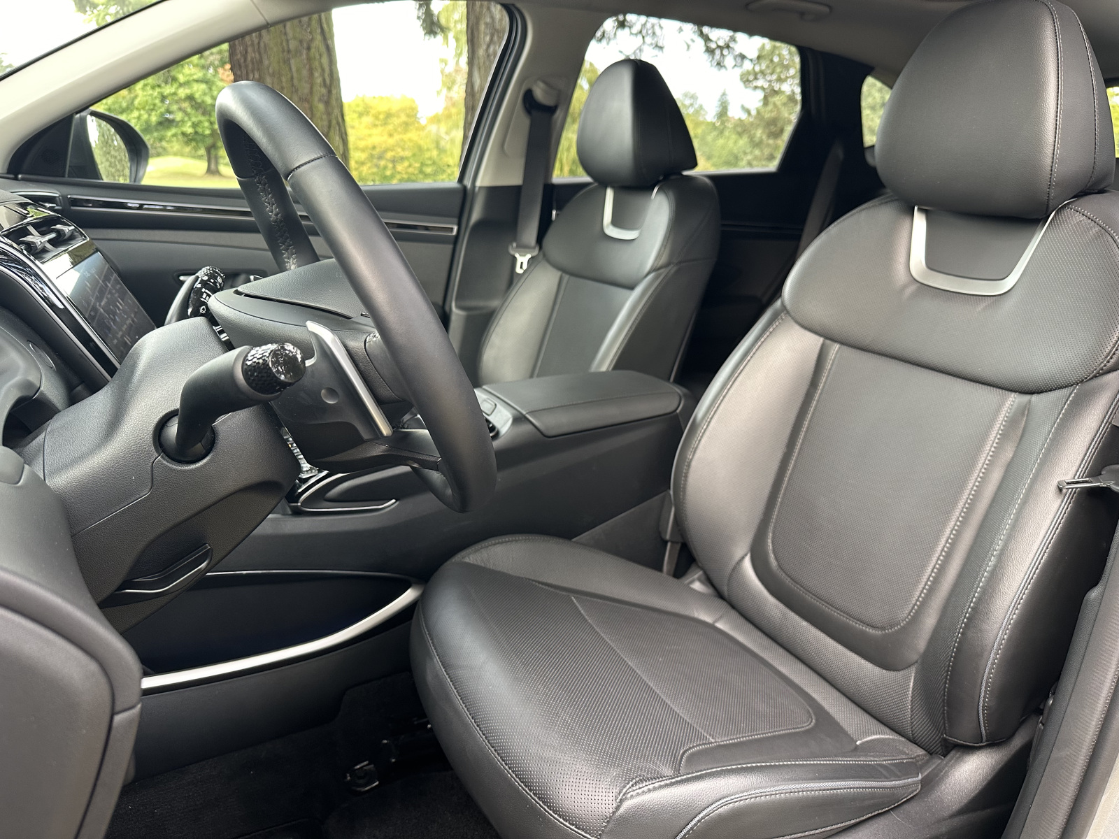 The interior of the Tucson is both spacious and tech-forward, with a clean, modern design. It comfortably seats five, with ample legroom and headroom in both rows. High-quality materials, such as soft-touch plastics and available leather upholstery, give the cabin a premium feel. The dashboard is dominated by a large touchscreen, available in both 8-inch and 10.25-inch sizes, featuring Apple CarPlay, Android Auto, and navigation. The digital instrument cluster, wireless charging, and ambient lighting add to the futuristic appeal of the interior, while the rear seats offer flexibility with a 60/40 split and reclining feature for added comfort.