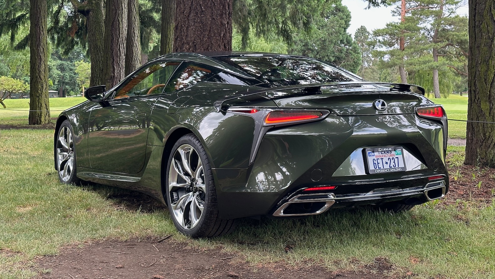 Poised, powerful, and polished, the 2023 Lexus LC is a delight to drive. The 2023 Lexus LC combines grand touring comfort with deft responses, thrilling acceleration, and a phenomenal sense of overall composure. All Lexus LC coupes are rear-wheel drive. The LC 500—both coupe and droptop versions—goes plenty quick thanks to its 471-hp 5.0-liter V-8. The 10-speed automatic fires through gears quickly, though you’ll want to grab the optional limited-slip rear differential for optimum grip even from a standing stop. Grab the available sport exhaust and the LC 500’s V-8 really snarls its way to 60 mph in about 4.4 seconds.