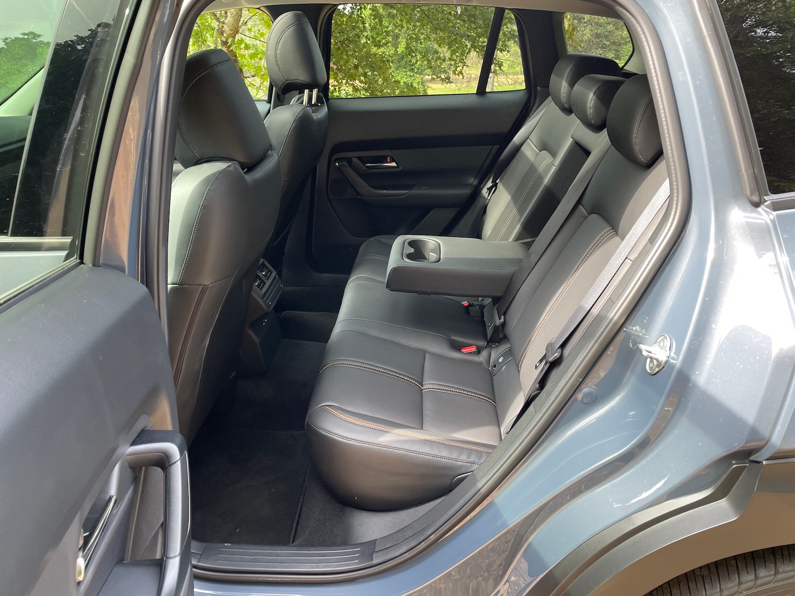 The fit and finish of the CX-50 vies for attention from anyone who’s driven a lesser rival. Mazda pays a lot of attention to the materials it stitches inside, and the CX-50 shows them off even better with the available panoramic sunroof. We haven’t sampled a cloth-interior car, but the leather-lined CX-50 has supportive and well-shaped front seats, with good adjustment and power assist on most trims. It’s not much larger than the still-on-sale CX-5, and so the CX-50’s back seat doesn’t strike us as substantially better. It’s big enough for two adults to stay calm for a long road trip, but a third should be slight of stature.