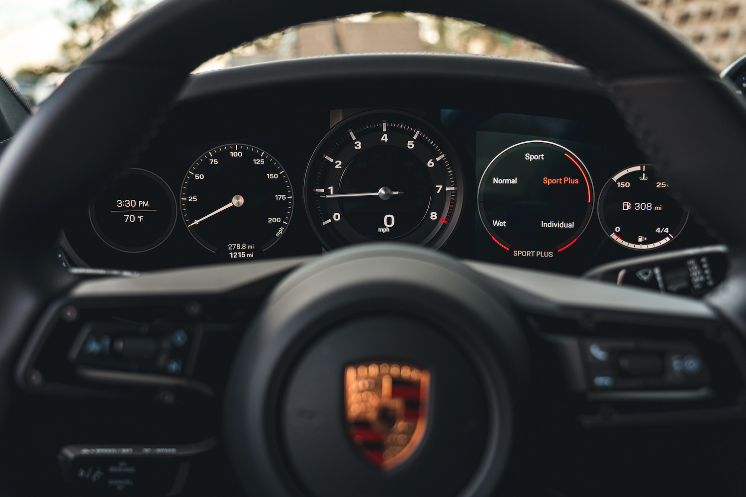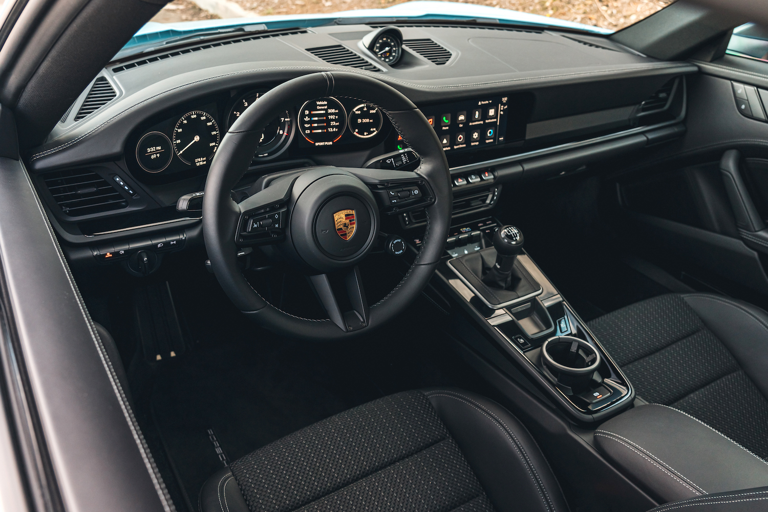 You know what else is a peach? Porsche’s 3.0-liter flat-6. Yes, the Carrera T might ‘only’ have 379 hp and 331 lb-ft, but that torque comes on super low (1,500 rpm) and stays strong past the midpoint of the rev range. This engine loves being wrung out to its redline and quick-shifted into the next gear. Bonus: There’s an automatic rev-matching downshift function built into the manual transmission, too, which makes dropping a gear a cinch. You can turn this tech off if you prefer to do your own heel-and-toe work, but this system is so stinkin’ good, I like leaving it on.
