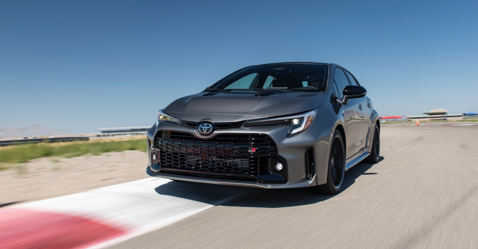 Another awesome feature is that there are three different settings for how much torque you want to send to the front and rear wheels. The default setting is 60:40 with most of the power going to the rear wheels, but you can also select a 50:50 setup or 30:70 if you want more power to go to the rear wheels. We only got to spend time with the GR Corolla on the track at the Utah Motorsports Campus where we were able to test out the three different modes. In the default setting the GR Corolla had no difficulty on the track. But if you want to have more fun, the “rear” setting that sends up to 70 percent of the torque to the rear makes it more fun to fling around corners, but it also meant that it was a bit slower on the track since there’s more play at the rear.