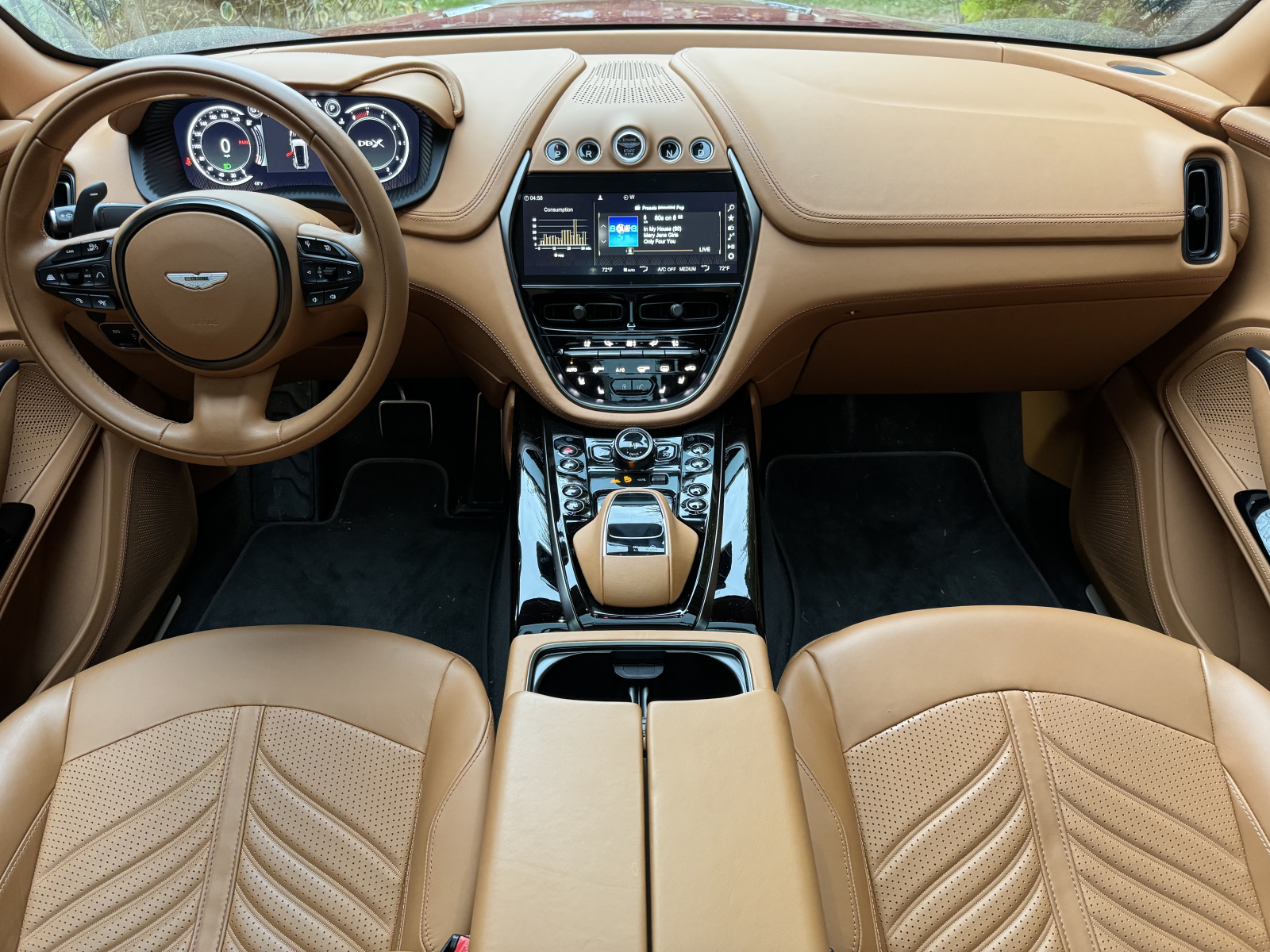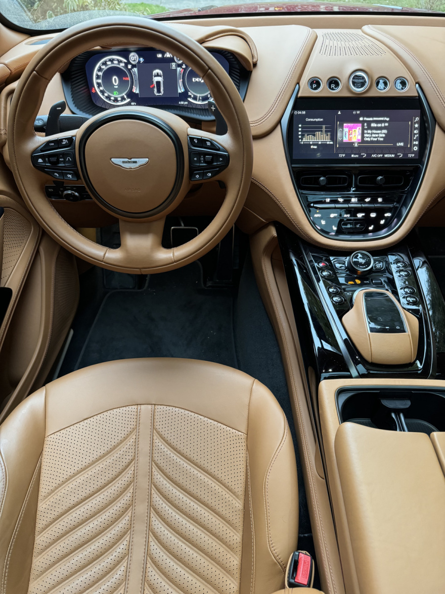 Inside, the DBX continues the Aston Martin tradition of luxury and bespoke craftsmanship. The cabin features premium materials like hand-stitched leather, real wood, and metal accents, creating a rich and opulent environment. The front seats offer exceptional comfort with heating and ventilation, while the rear seats provide ample legroom and headroom for adult passengers. The infotainment system is borrowed from Mercedes-Benz and includes a 10.25-inch display, though the system’s interface feels slightly dated compared to rivals. Optional extras include a panoramic glass roof, ambient lighting, and a premium sound system.