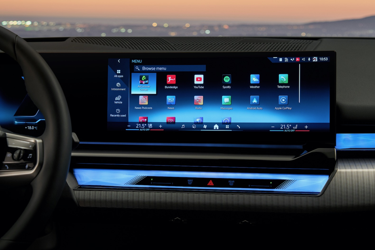 Inside the more spacious interior gets updated tech, like a curved display that consists of a 12.3-inch digital instrument cluster and a 14.9-inch touchscreen that runs the BMW Operating System 8.5 infotainment system. There’s also a new in-car gaming platform called AirConsole that turns the driver’s smartphone into a controller. The new 5 Series also gets an automated parking system and Highway Assistant technology that allows for hands-free driving at speeds up to 85 mph.