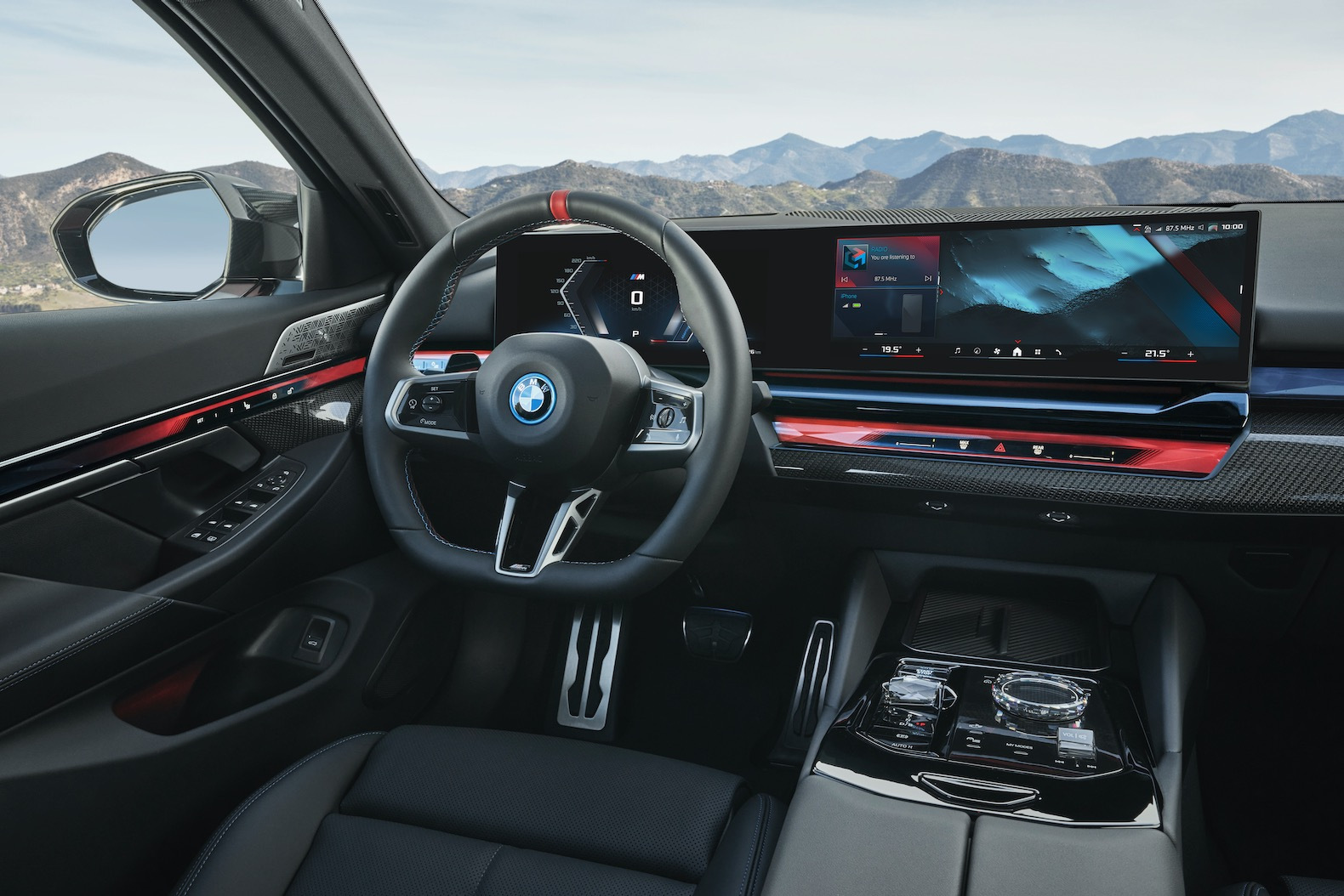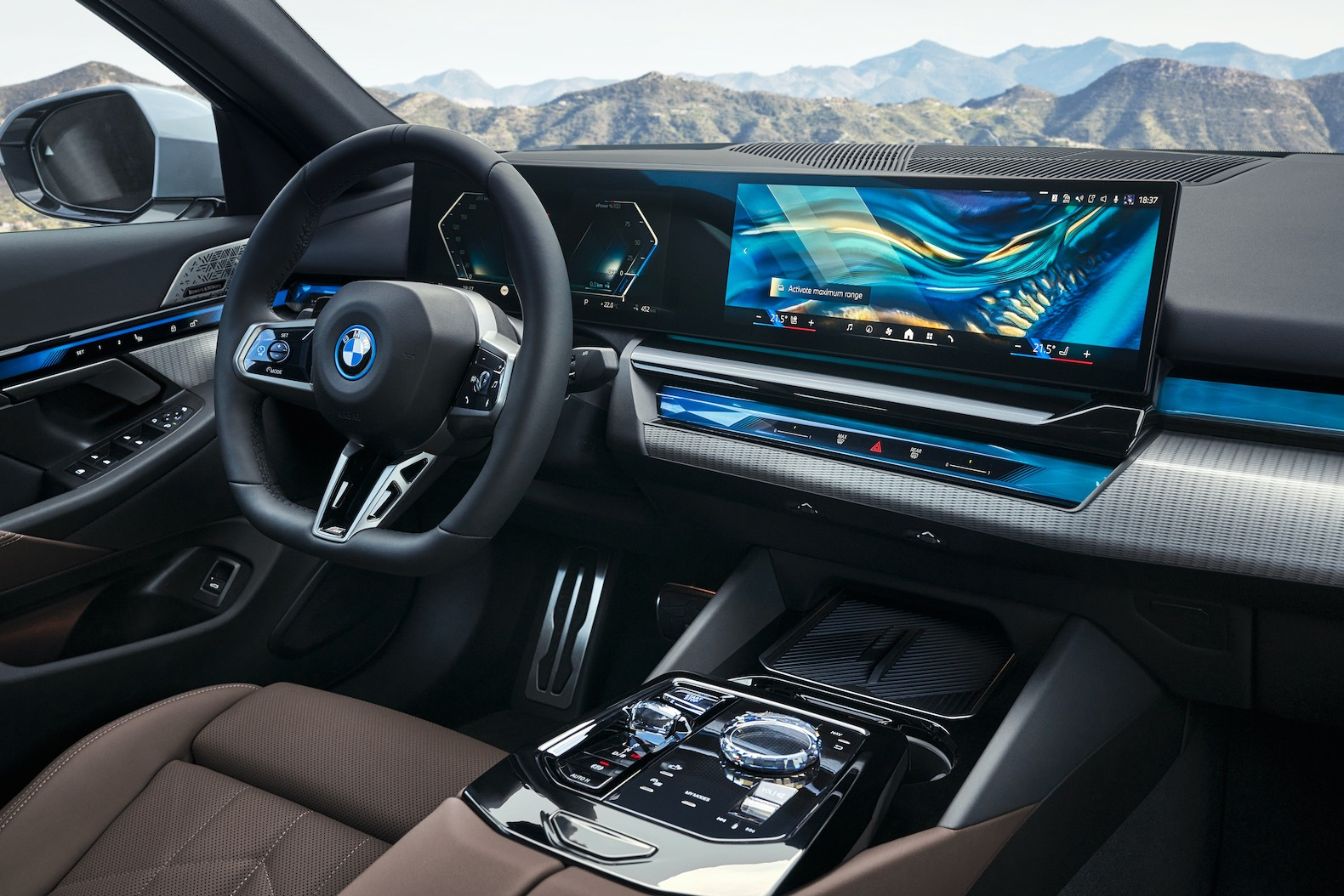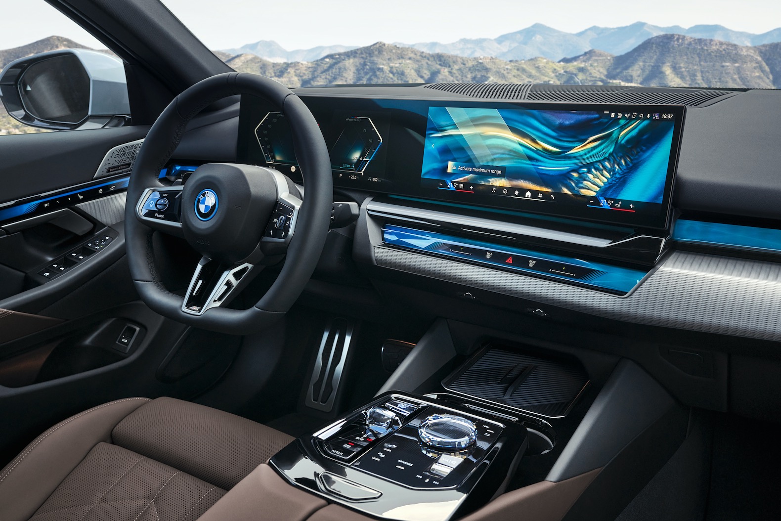 The electric i5 will be offered in two versions, eDrive40 and M60 xDrive. The eDrive 40 version is powered by a rear electric motor with 335 horsepower and 295 pound-feet of torque. The torque rating can be increased to 317 lb-ft. by activating either the Sport Boost or Launch Control function. The M60 xDrive is powered by a dual-motor all-wheel drive powertrain with 590 horsepower and 586 lb-ft. The torque rating can be increased up to 605 lb-ft. The eDrive 40 can accelerate from 0-60 mph in 5.7 seconds, while the M60 xDrive only needs 3.7 seconds to reach that speed.