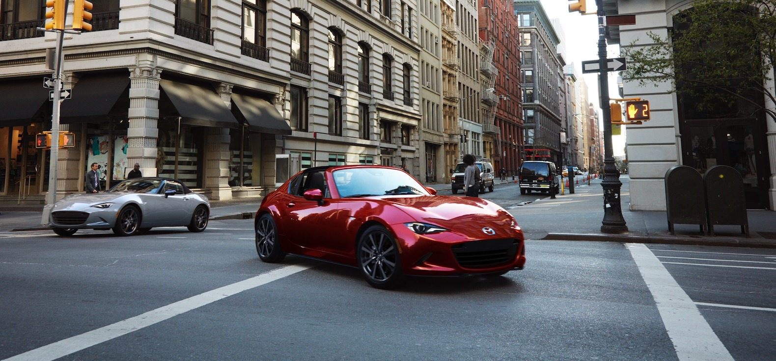 The MX-5 Miata is powered by a 2.0-liter four-cylinder engine with 181 horsepower and 151 pound-feet of torque, which can be mated to either a six-speed manual or six-speed automatic transmission. The electric power steering system has been updated, which includes a new steering rack.