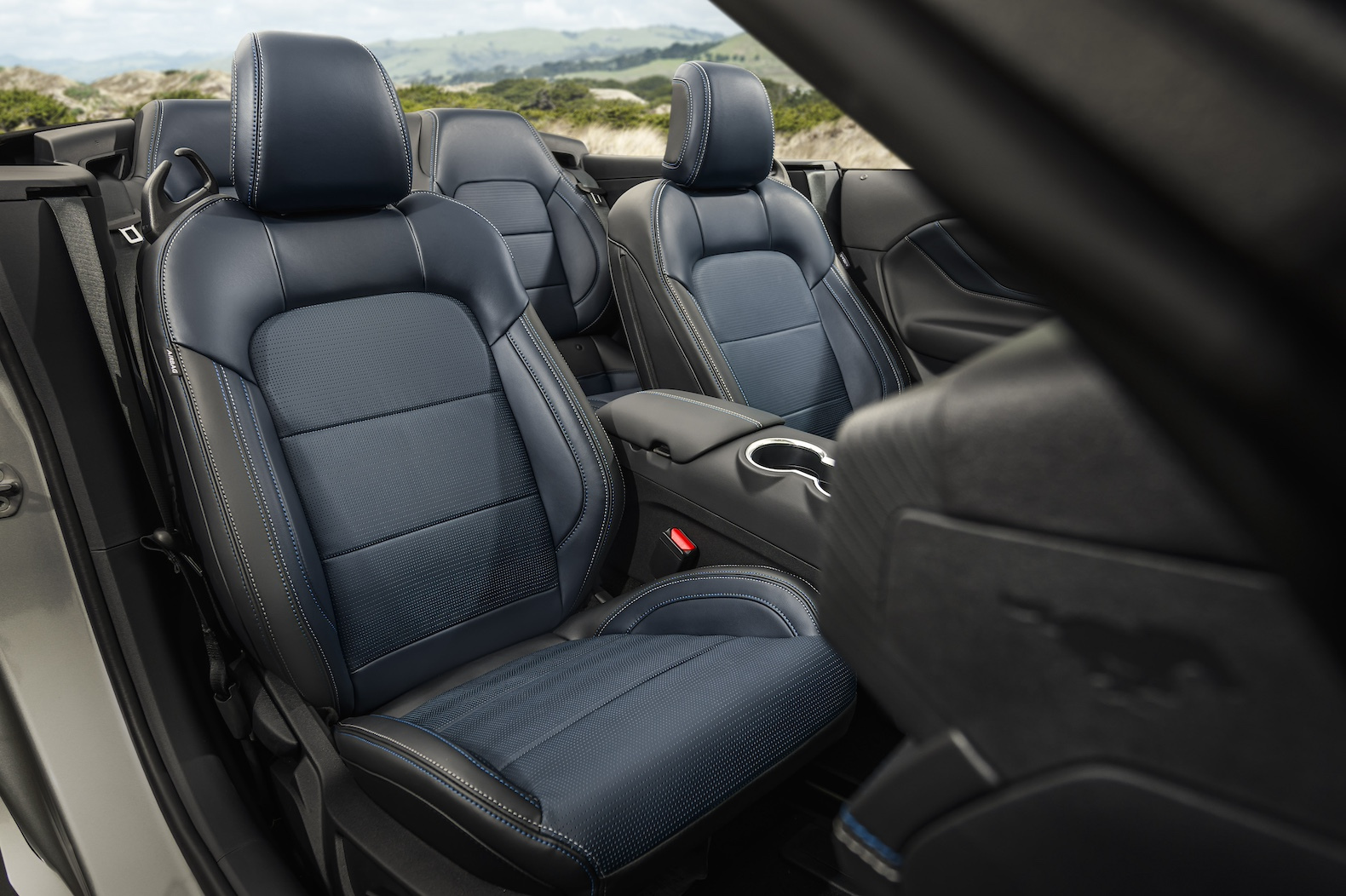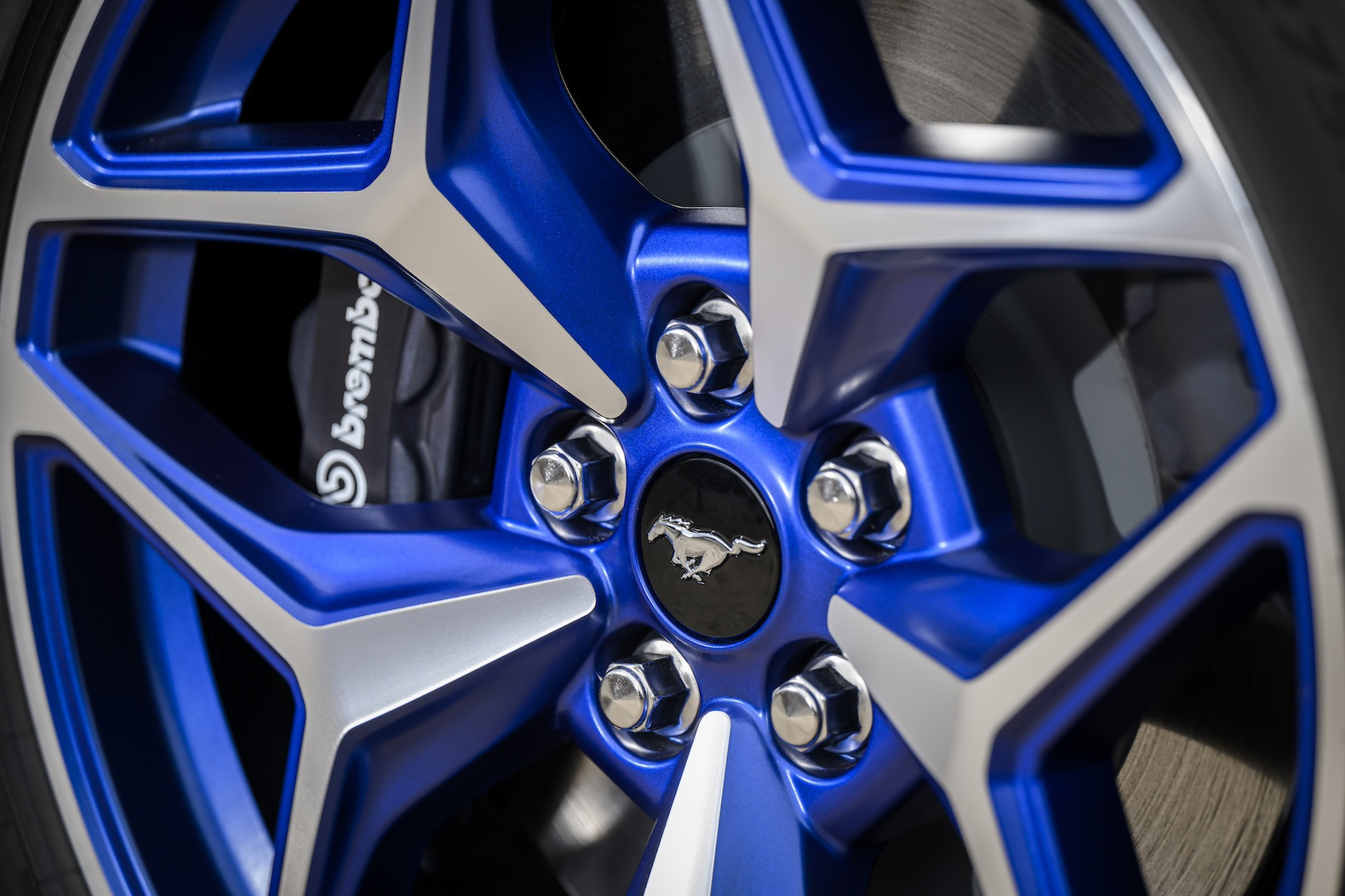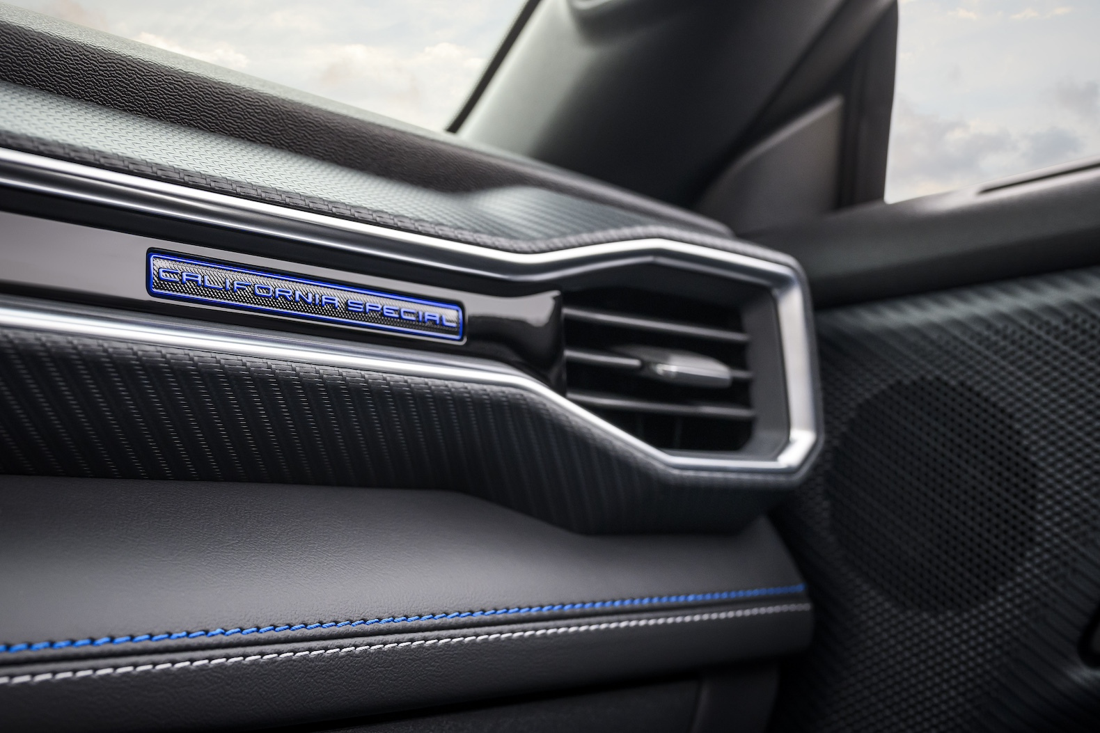 In particular, Bellino is talking about the Rave Blue accents that decorate newest Ford Mustang GT California Special. Up front, Rave Blue air intakes can be seen on the low gloss black grille, body graphics and the optional 19-inch wheels. You’ll also find Rave Blue accents on the interior, with Navy Pier upholstery and Ebony Black leather seats. Contrasting Raptor Blue and Metal Gray stritching can be seen throughout the cabin. And, of course, there’s the obligatory badge on the instrument panel and floor mats.