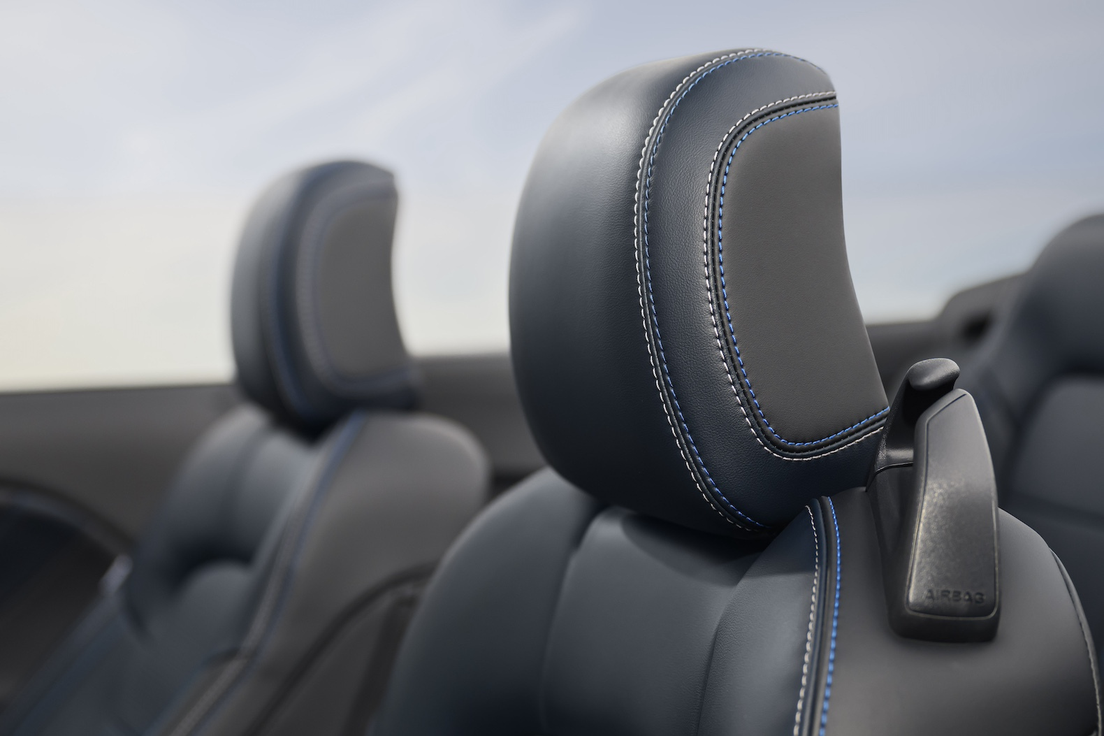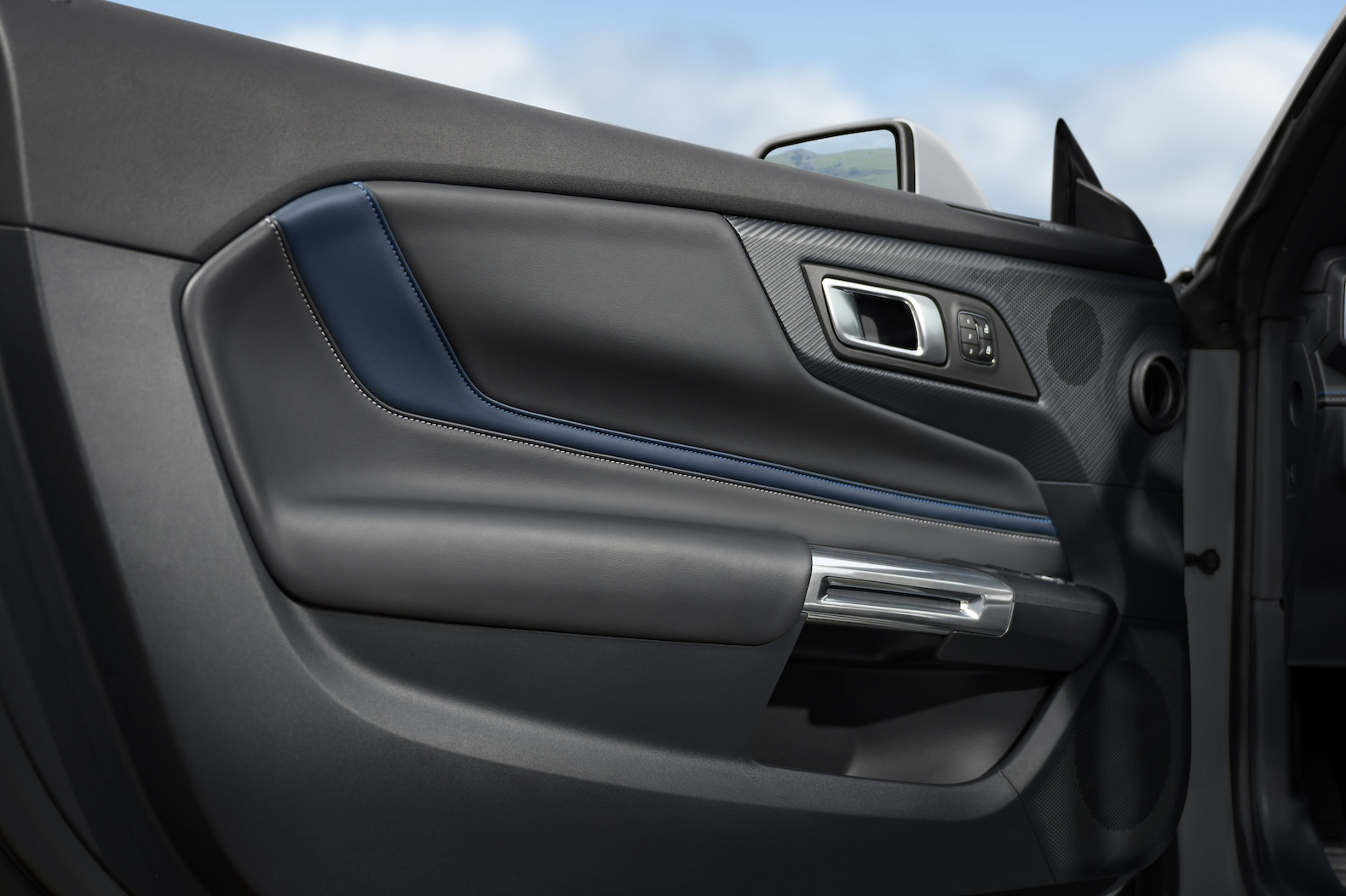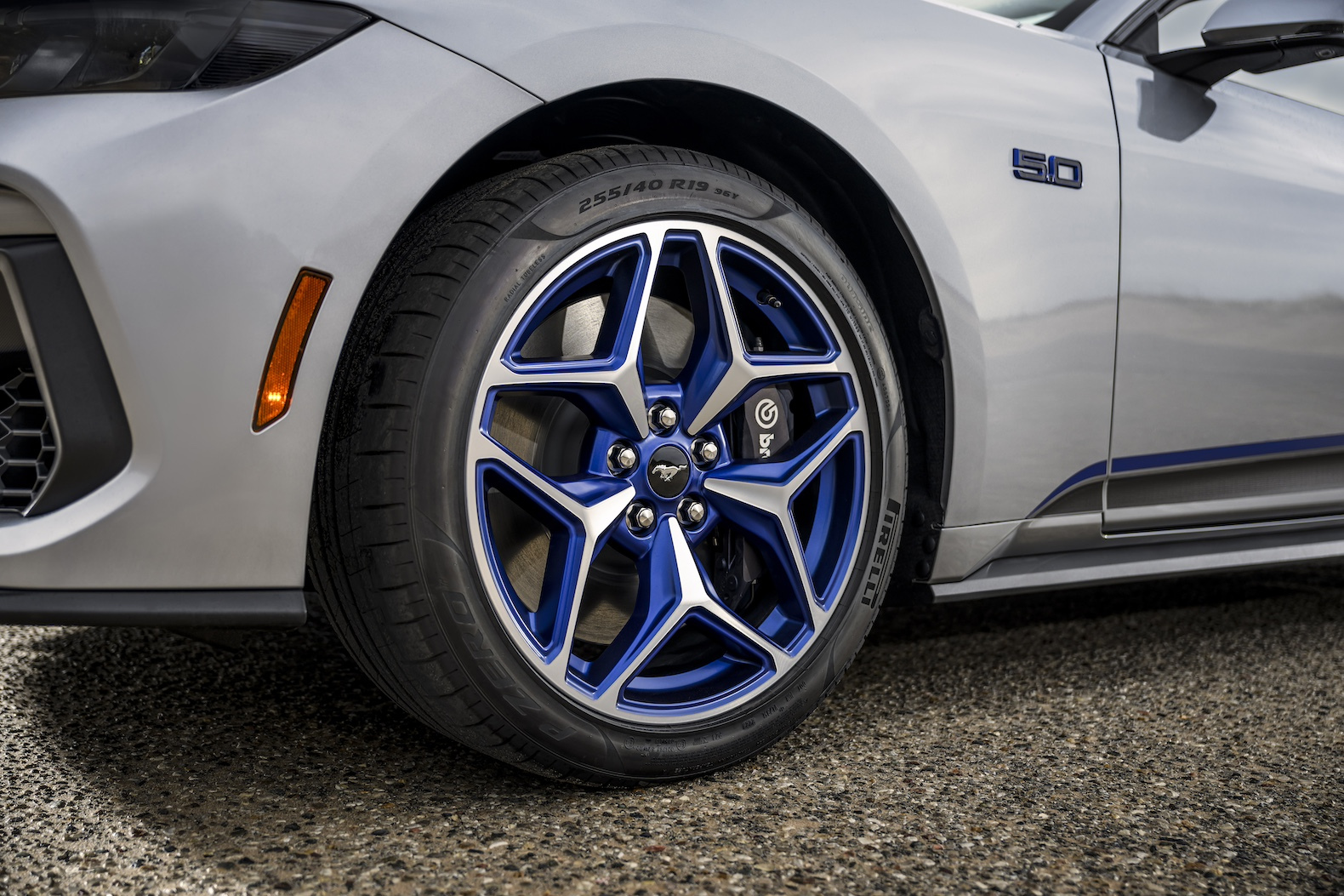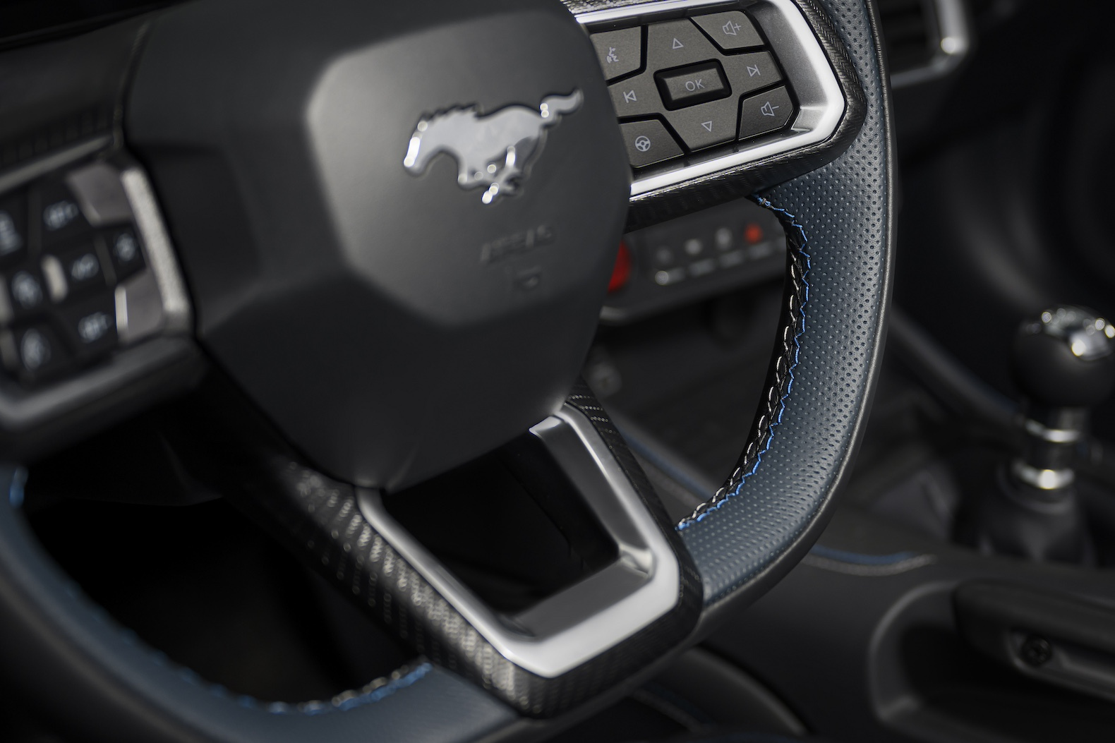 In particular, Bellino is talking about the Rave Blue accents that decorate newest Ford Mustang GT California Special. Up front, Rave Blue air intakes can be seen on the low gloss black grille, body graphics and the optional 19-inch wheels. You’ll also find Rave Blue accents on the interior, with Navy Pier upholstery and Ebony Black leather seats. Contrasting Raptor Blue and Metal Gray stritching can be seen throughout the cabin. And, of course, there’s the obligatory badge on the instrument panel and floor mats.