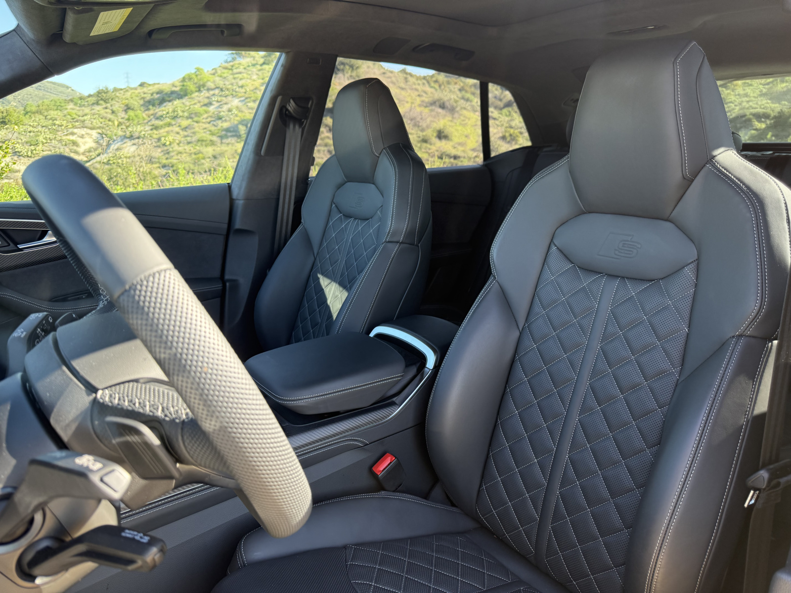 The Q8 wraps up to five people in lavish comfort. Audi takes the Q7 and deletes the skimpy third-row seat, then plushes up nearly every surface not made of glass, all to fabulous effect. Good front and back seats, and good cargo space, combine with exceptional fit and finish. The Q8 measures 117.9 inches in wheelbase, and 196.6 inches overall. It’s a big SUV, and with all the space devoted to five people (or four with the Executive package), it’s spacious in every dimension. The front seats have great support and adjustments, and come with heating and available cooling and massaging.