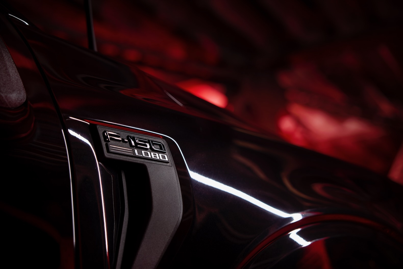 The F-150 Lobo features a lowered ride with an updated suspension that drops the rear of the truck by 2 inches and the 10-piece ground appearance package makes it look even lower to the ground. At the front the F-150 Lobo also gets a unique gloss black mesh lower grille and a new distinctive upper grille with a light bar to help it stand out.