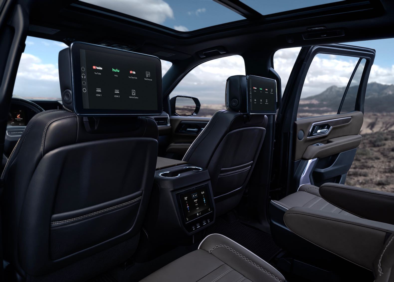 A new Executive Seating package available on the Denali Ultimate gives second-row passengers heated, ventilated, and massaging seats with integrated headrest speakers.