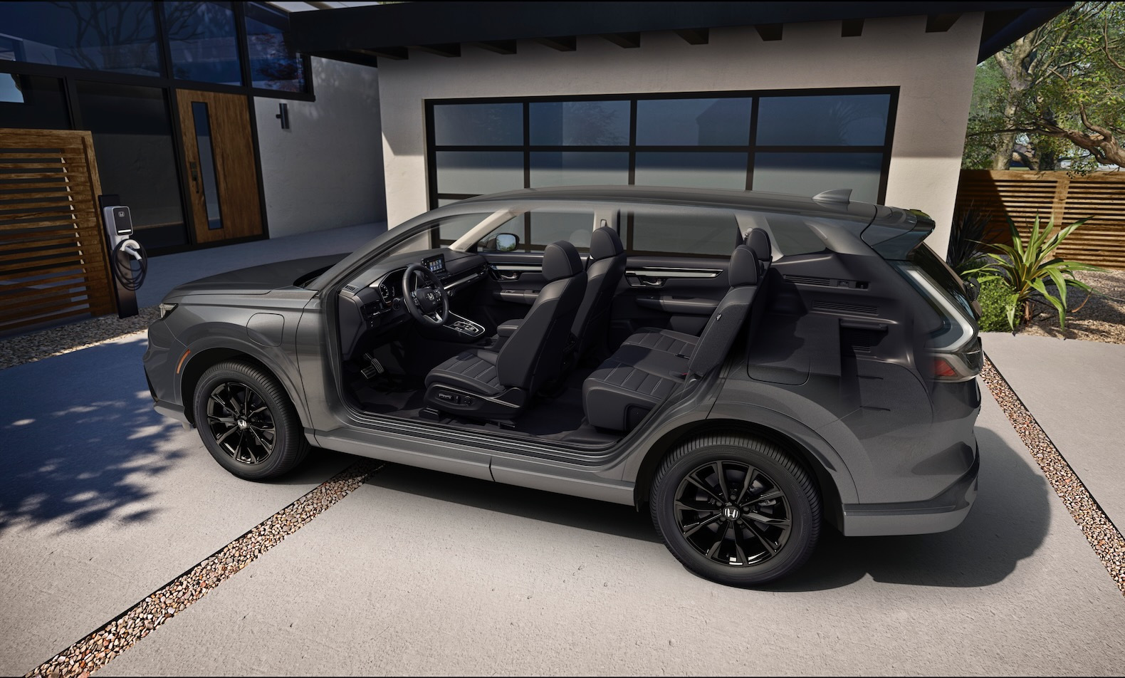 The CR-V e:FCEV stands out from the rest of the CR-V lineup with new body panels forward of the A-pillar, a unique rear fascia and 18-inch, 10-spoke black wheels.