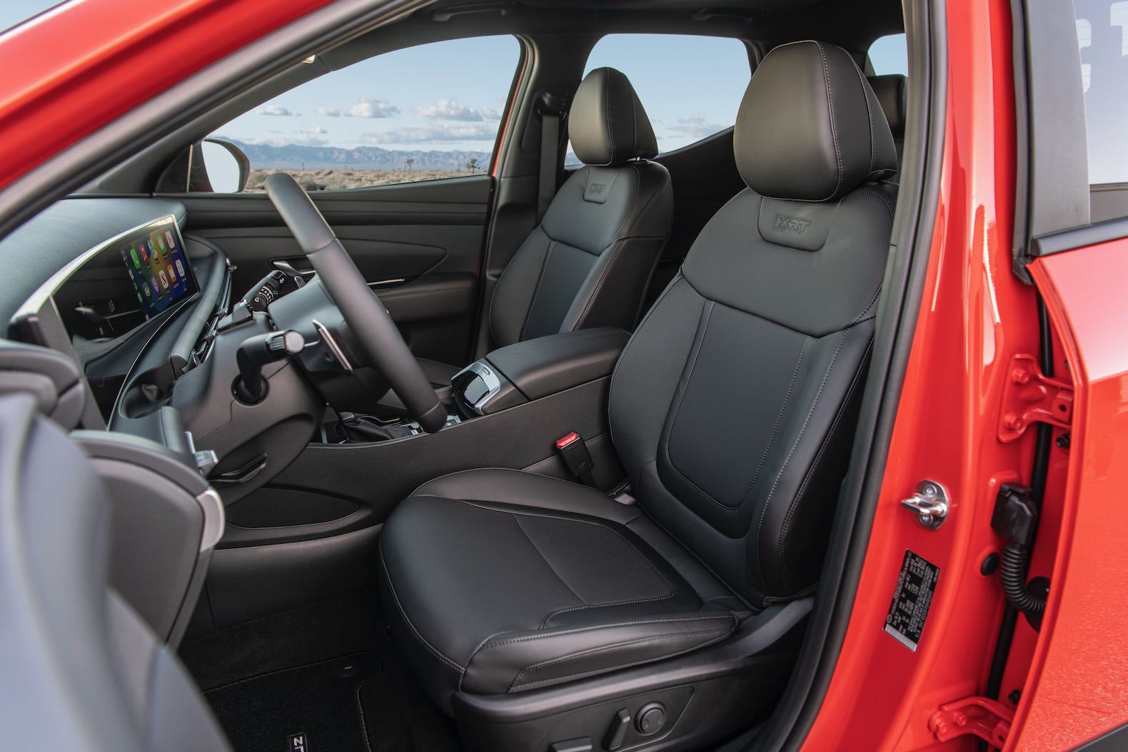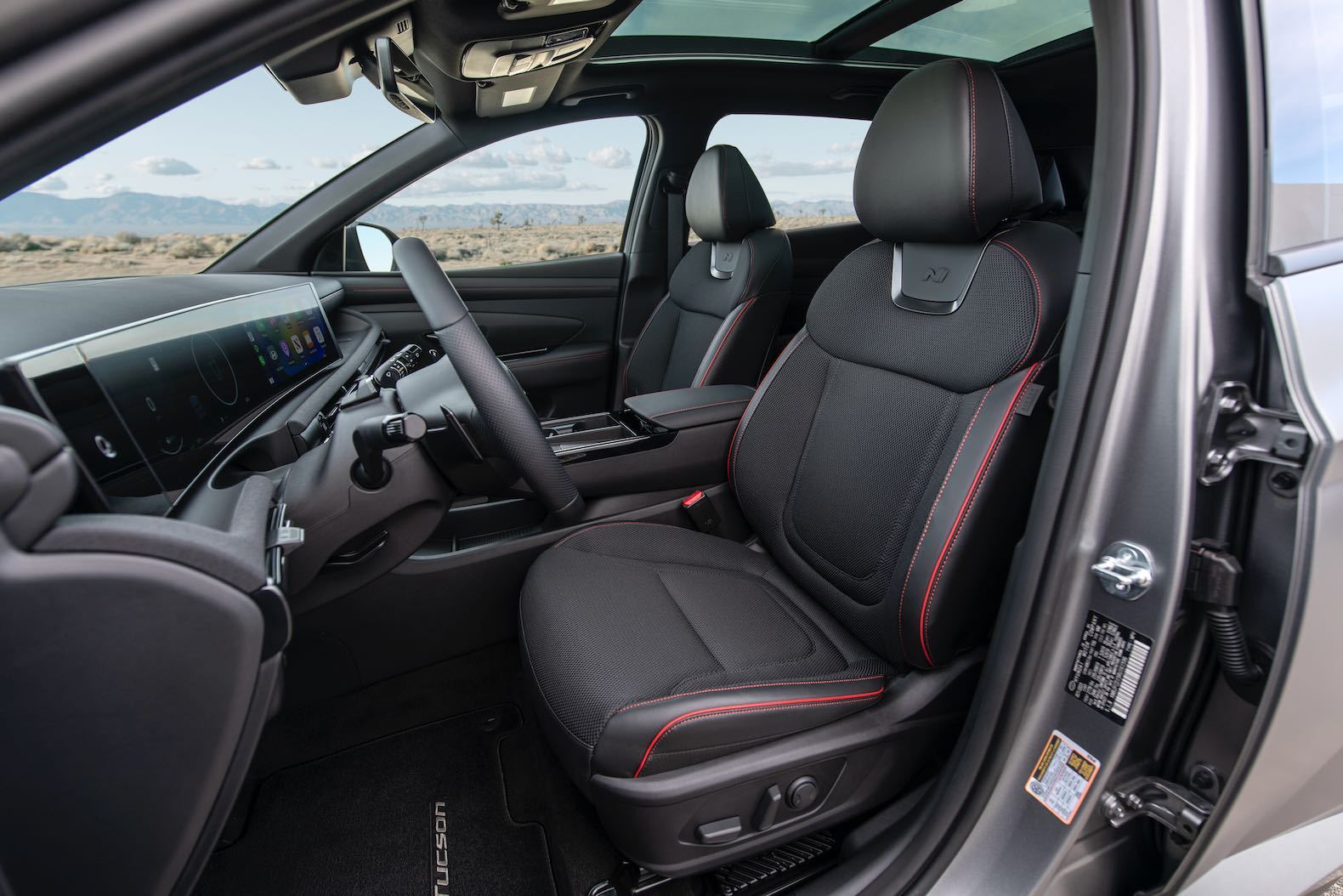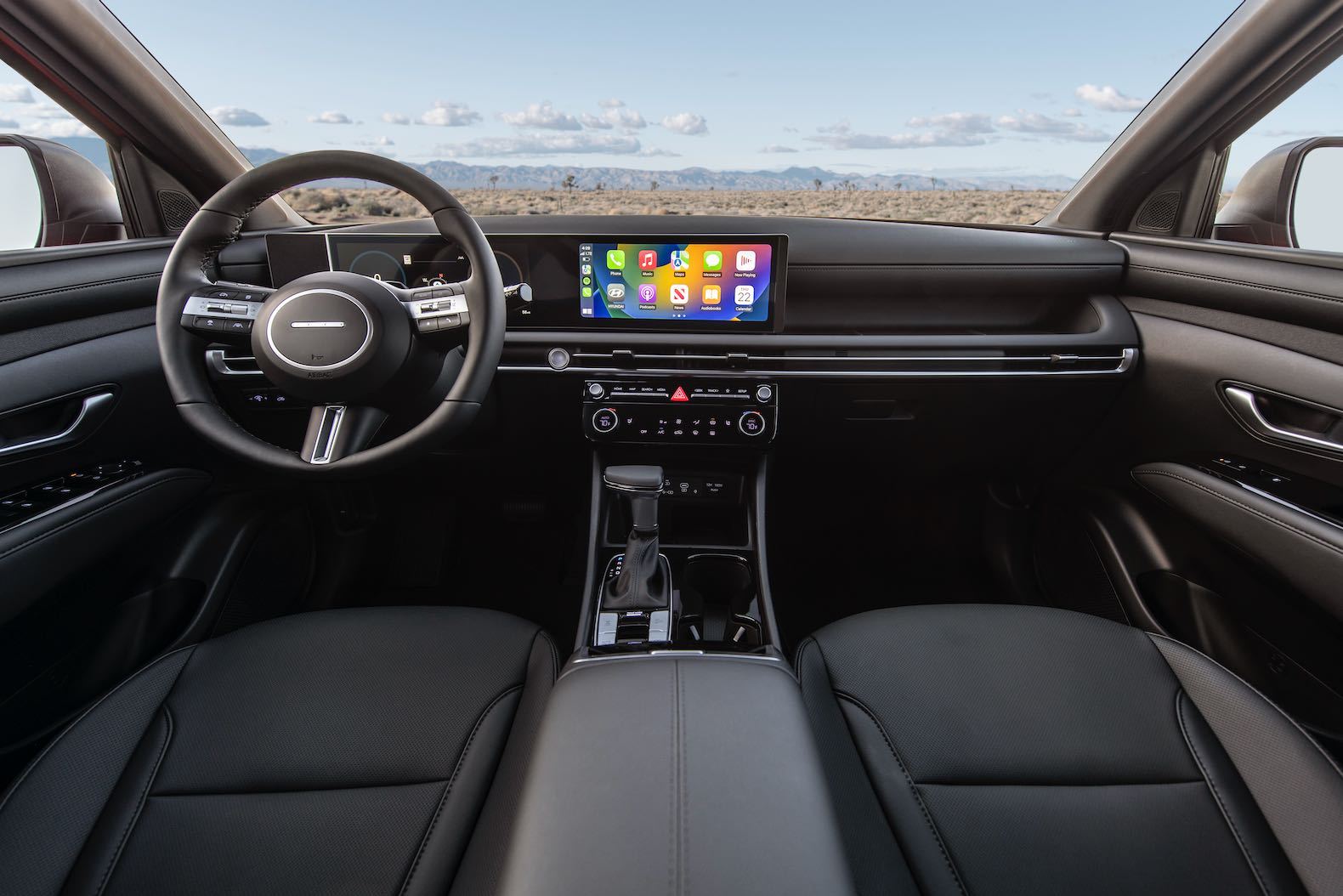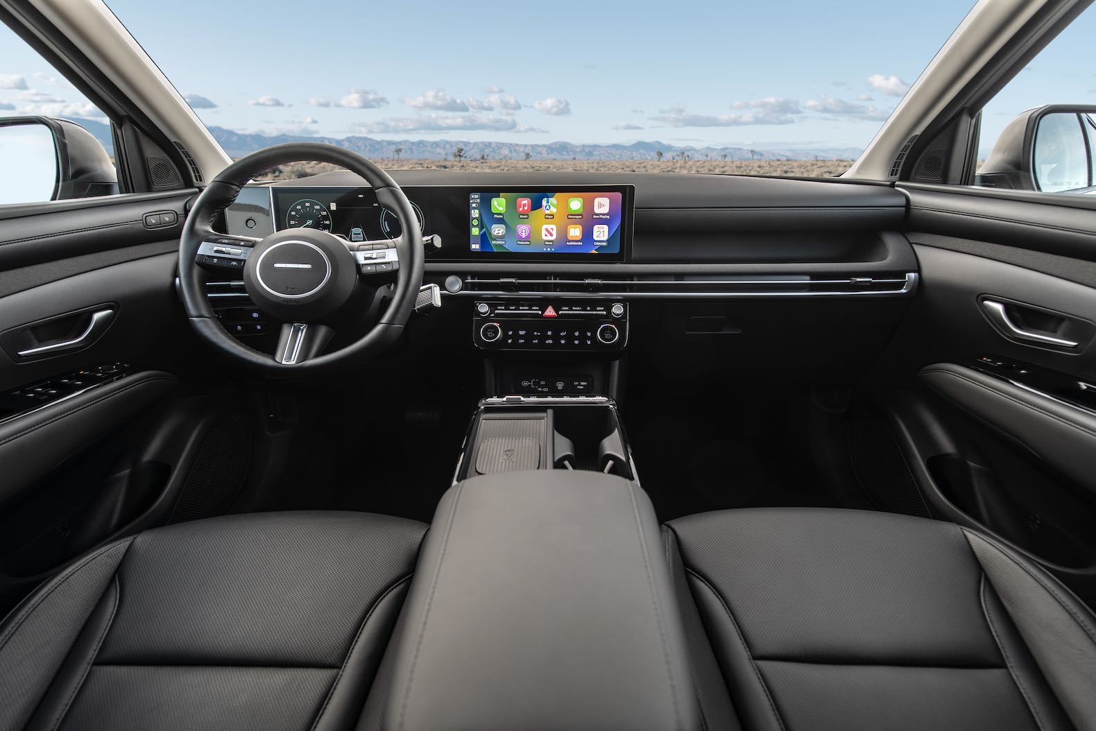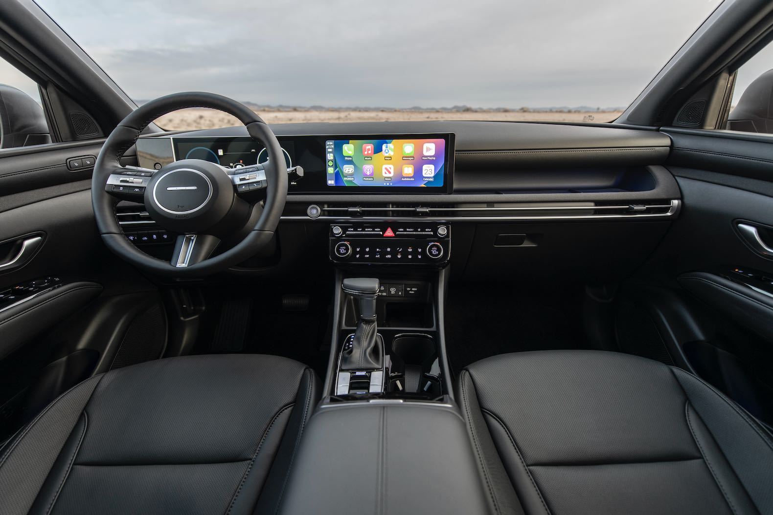 The current Hyundai Tucson interior has received its fair share of criticism for its fiddly touch-sensitive climate controls. The 2025 Hyundai Tucson features a complete redesign of the center console, replacing those touch-sensitive buttons with physical knobs and switches for easier use while in motion. Hyundai is also introducing a curved digital cockpit design that features two 12.3-inch digital displays mounted side-by-side, powered by an upgraded processor, and with wireless Apple CarPlay and Android Auto. A new steering wheel rounds out the interior updates, as does a new wireless charging pad placement and enhanced USB-C outlets.