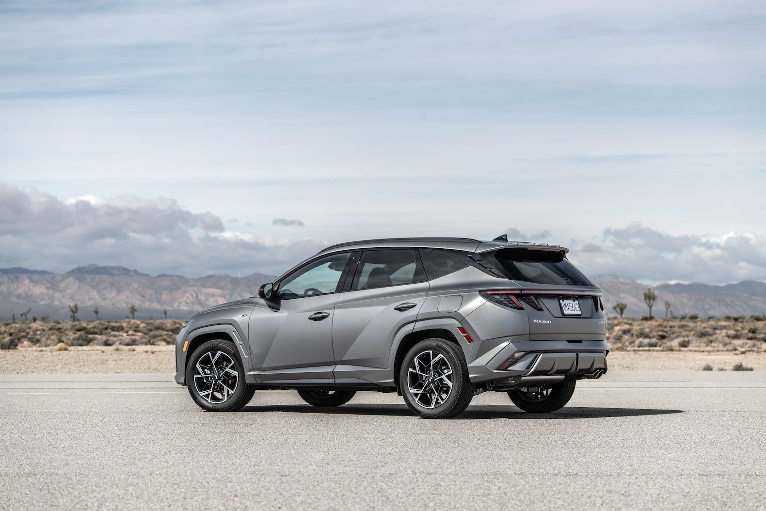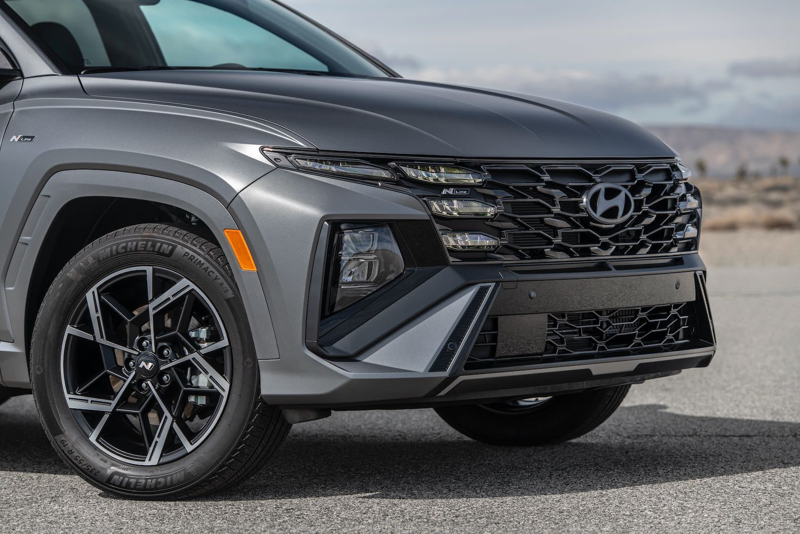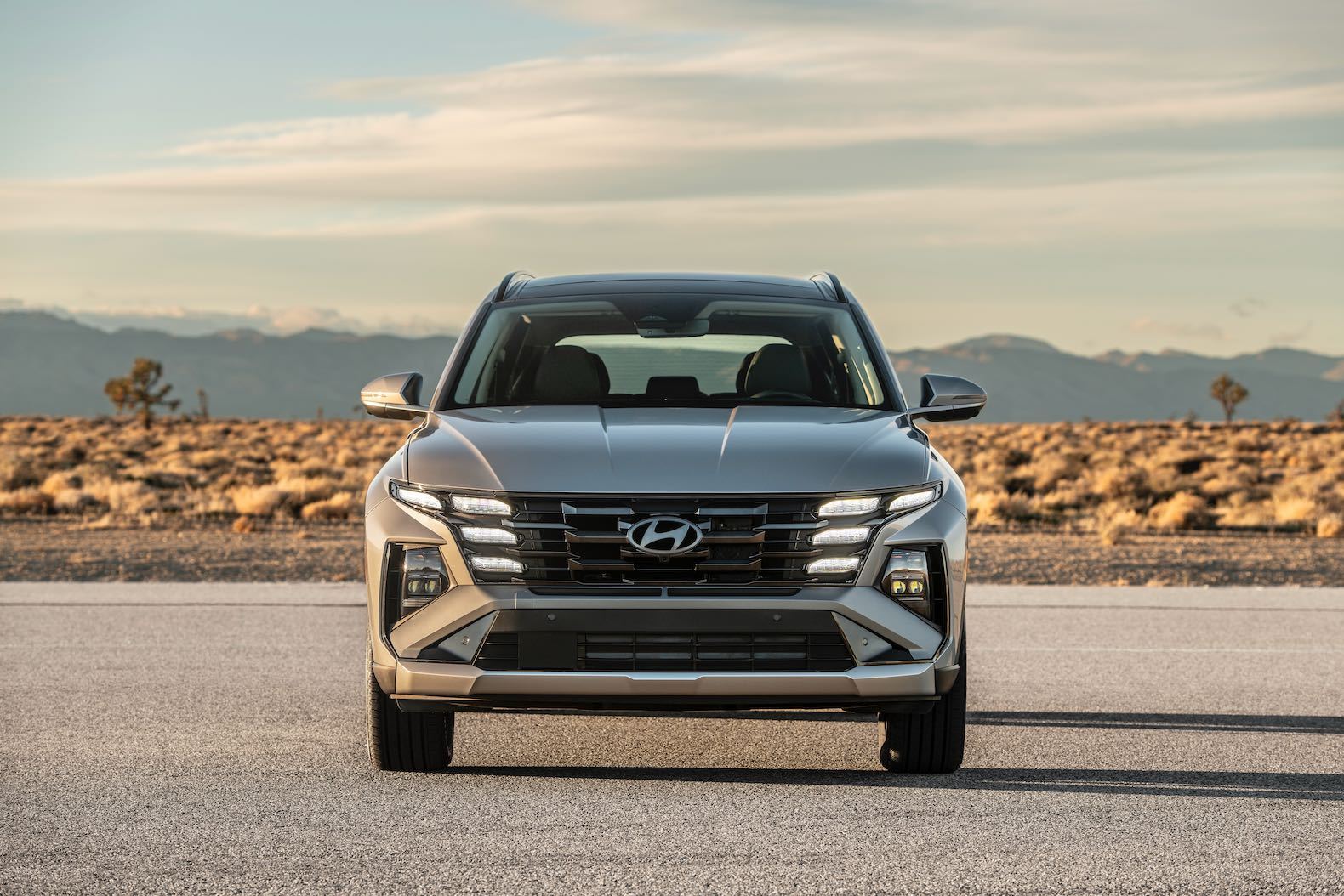 Outside, the 2025 Hyundai Tucson features mild styling tweaks. The most obvious of these is an updated frontend treatment that features an updated grille/daytime running light/headlight arrangement that includes fewer individual lighting units and a slightly more squared-off look. The general shape of the rest of the vehicle retain much the same look as the current Tuscon, while the rear also remains largely unchanged, with slight updates to the bumper detailing. New wheel designs and colors will also be available on the updated Tucson.