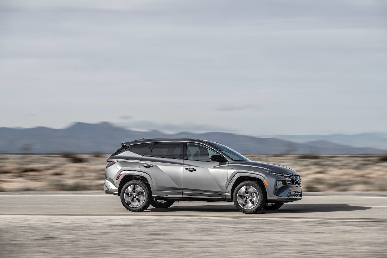The 2025 Hyundai Tuscon will continue to be available in hybrid, plug-in hybrid, and gas configurations. The hybrid now makes 231 hp, a slight increase from the current version, while the plug-in hybrid model also gains a slight boost to 268 hp thanks to a more powerful electric motor. Both hybrid and plug-in hybrid will come standard with AWD. The standard, no hybrid version will continue to feature a 2.5-liter gas engine producing 187 hp and will be available in both FWD and AWD configurations.
