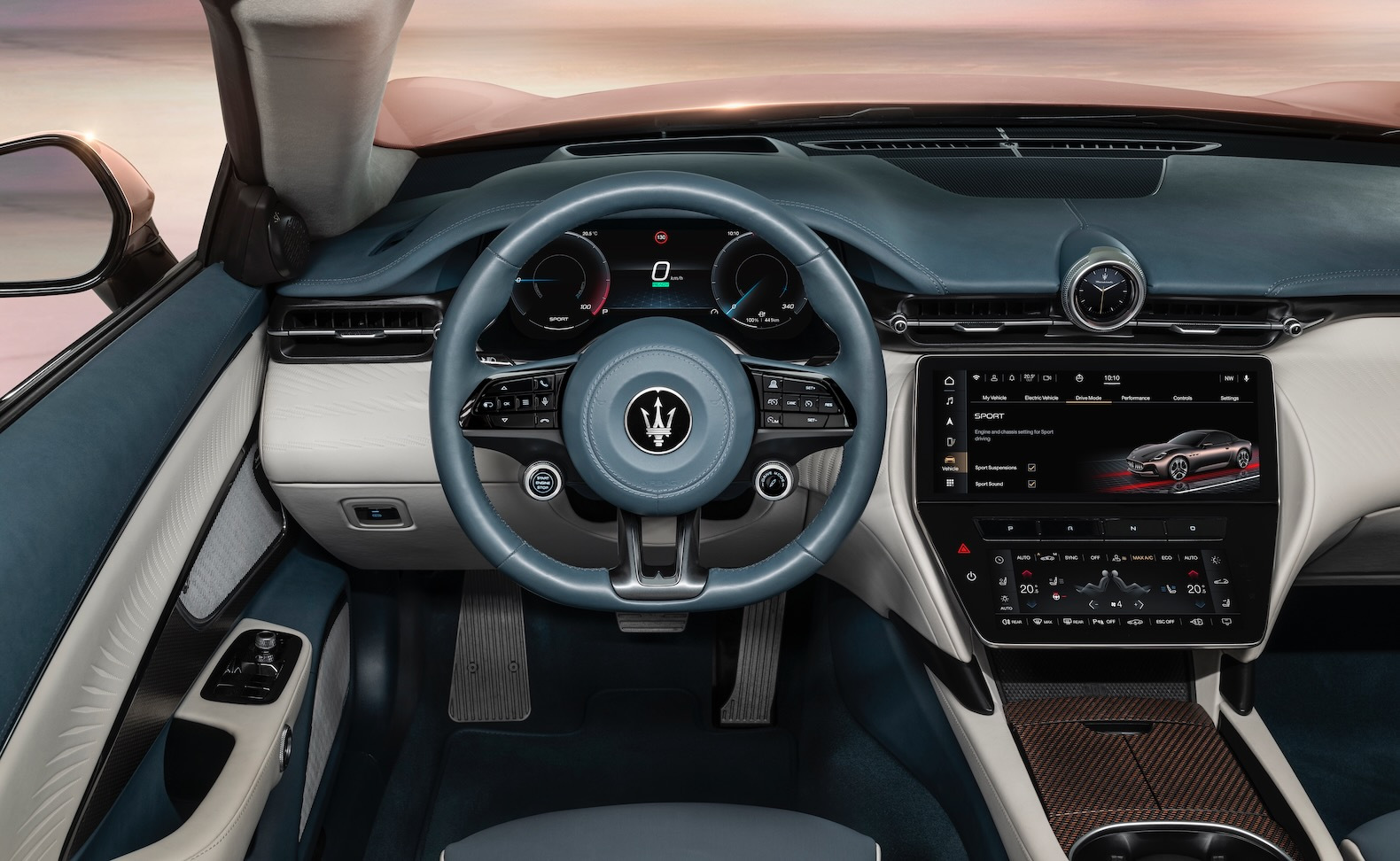 Just like the coupe, the GranCabrio Folgore is based on an 800-volt architecture with a T-shaped battery pack that sits in the middle of the EV and behind the rear seats. It can be charged from 20-80 percent in only 18 minutes and a 278 mile range on Europe’s WLTP cycle.