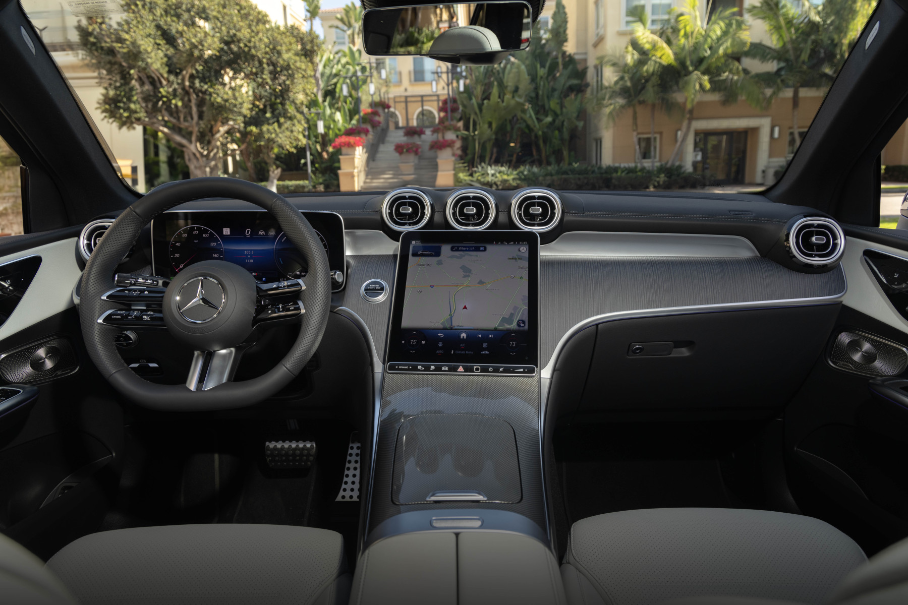 Inside, the 2025 GLC delivers a cabin that blends form and function in a manner befitting a premium brand. Materials are high-grade—soft-touch surfaces, brushed metal accents and available wood or carbon-fiber trims finish the space to a luxury SUV standard. Front seats are supportive and adjustable, and rear passengers benefit from ample legroom in the compact luxury class. Cargo space is adequate though not class-leading, but for many buyers the trade-off for upscale finish and comfort is worth it. Especially impressive is how much of the interior feels more like a luxury sedan than an SUV.