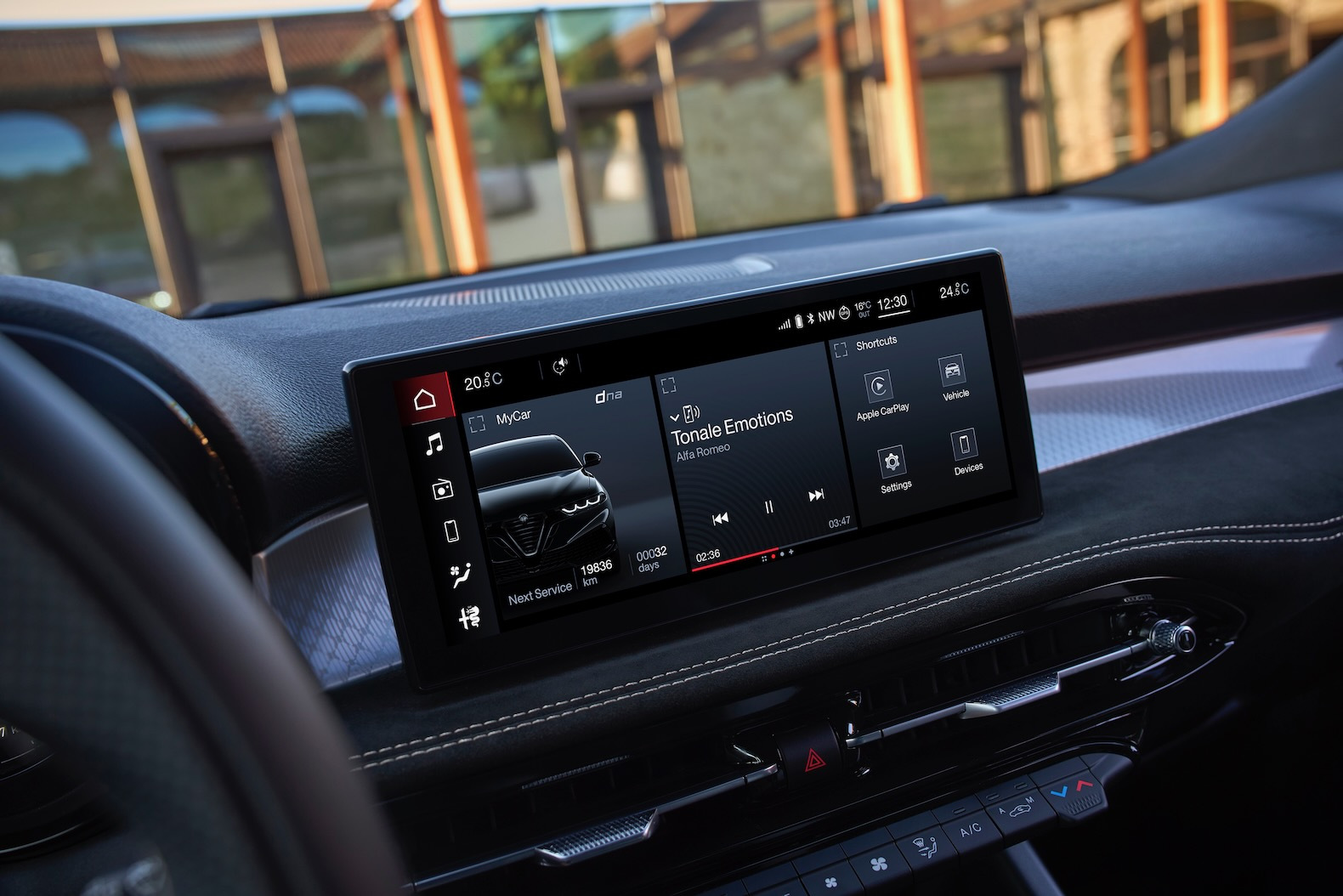 New wheel options, including a striking 20-inch three-hole design, update the Tonale’s signature look. Subtle details like refreshed Alfa Romeo badging and optional black roof add a cleaner, more modern edge to the exterior.