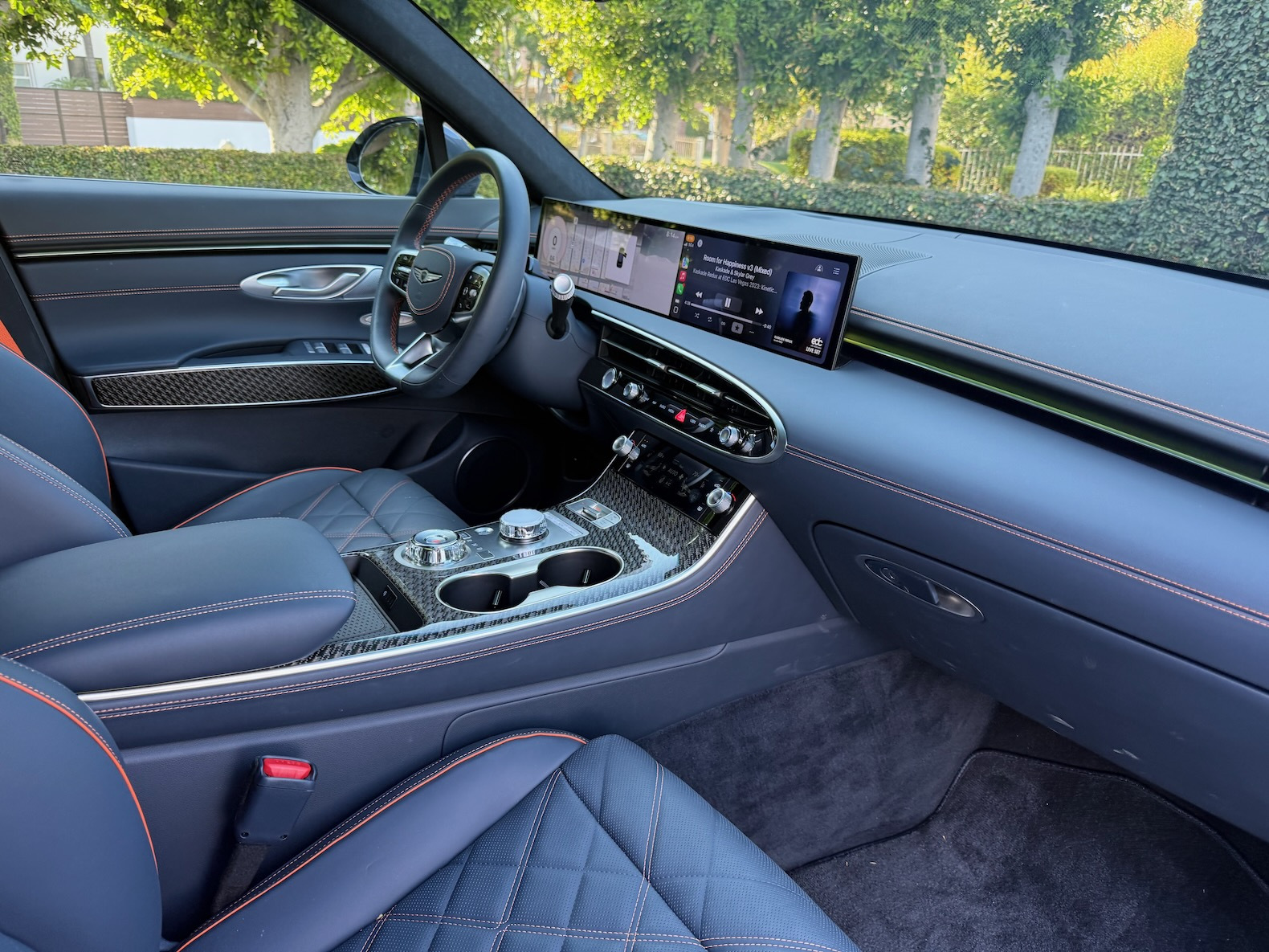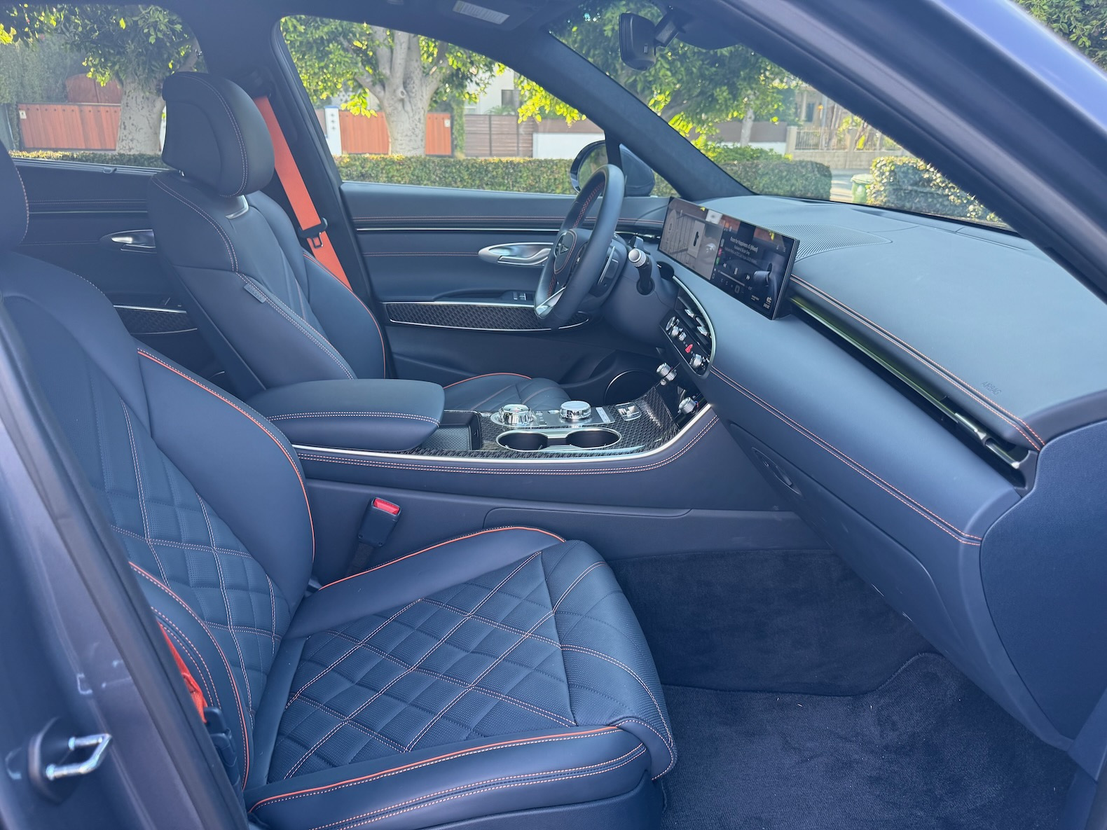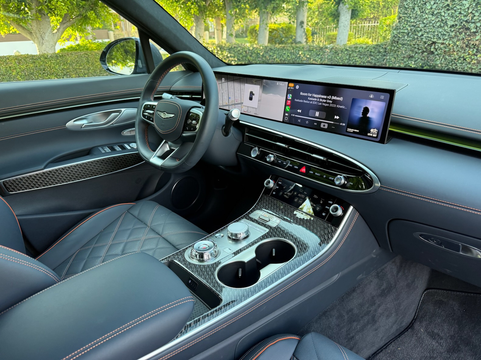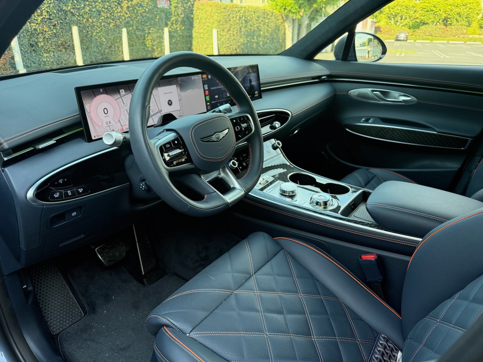 Inside, the 2026 GV70 gets a big tech upgrade. The cabin now features a sleek 27-inch display that integrates both the gauge cluster and infotainment system into one seamless screen. The display is clear, modern, and easy to use. As before, the interior is a highlight of the GV70. High-quality materials, a luxurious design, and supportive seats make it a comfortable place to spend time. The front seats are roomy and plush, while the rear seat is still a bit on the cramped side compared to its competitors.