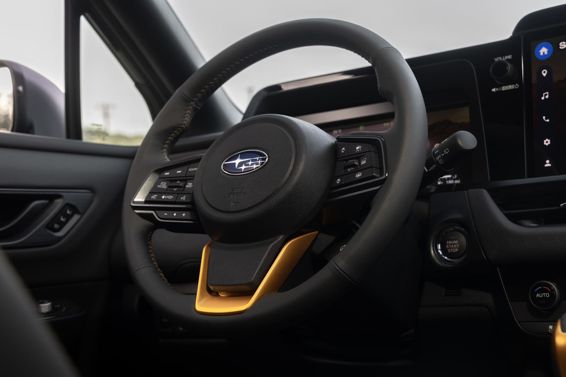 On the road, the Outback strikes a confident balance between composed highway cruising and capable handling on rougher surfaces. Ride quality is smooth and compliant, with suspension tuning that absorbs imperfections while preserving a planted feel during cornering. The naturally aspirated 2.5‑liter engine provides adequate acceleration for most driving scenarios, while the turbocharged 2.4‑liter delivers a noticeable increase in responsiveness, especially when merging or passing at highway speeds. The hybrid powertrain feels refined and effortless in everyday traffic, with electric assist smoothing out throttle response and improving low‑speed torque delivery. Steering is intuitive and communicative for a vehicle of this type, and the standard all‑wheel‑drive system reinforces confidence, particularly in wet or uneven conditions. The Wilderness variant’s suspension and all‑terrain tire setup add an extra layer of capability when venturing off the beaten path without compromising too much on paved‑road manners.