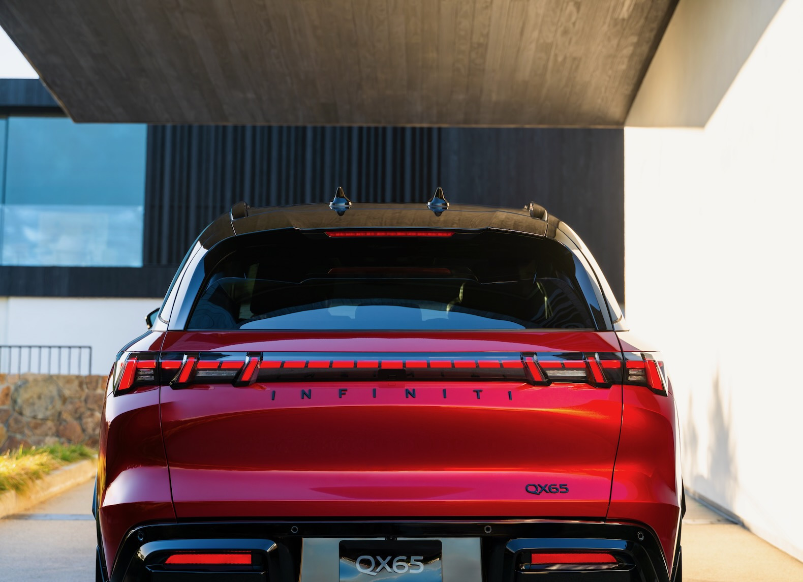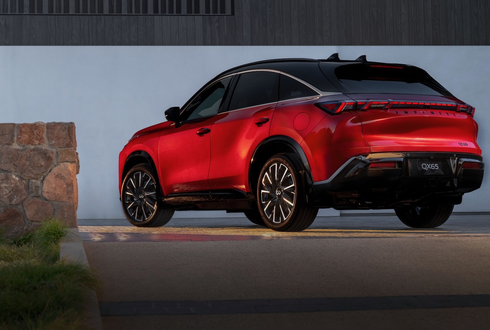 The QX65 will come in several versions, including the Sport and Autograph. The Sport has a bolder look with shiny black details on the outside, 20-inch wheels and darker colors for the interior. The Autograph is more about being luxurious, featuring 21-inch wheels, a black roof, wood trim with the grain showing, stitched upholstery, and front seats with a massage function using semi-aniline leather.