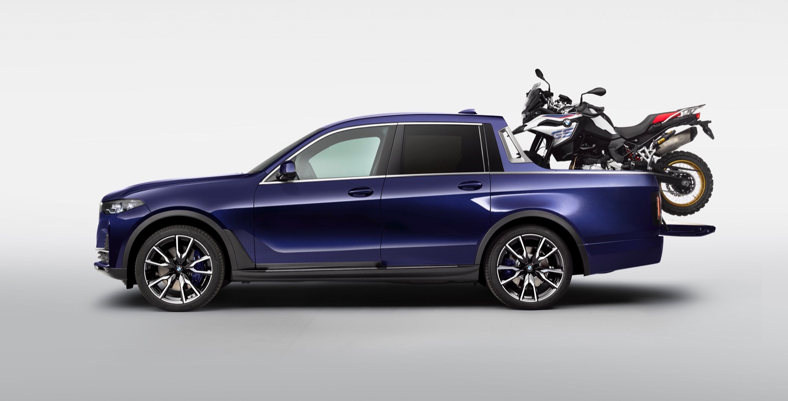 The BMW X7 Pick-up, is a one-off concept that’s debuting this weekend at BMW’s Motorrad Days. The X7 Pick-up started life as an X7 crossover, but it was converted into a pickup truck by BMW Group vocational trainees in cooperation with the Concept Vehicle Construction and Model Technology divisions at BMW’s Munich plant.