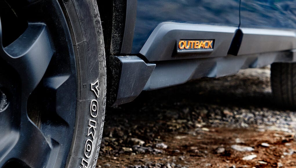 This teaser photo of the Outback Wilderness shows that it will ride on black alloy wheels that are wrapped in Yokohama all-terrain tires. There are also new rocker panels and the Outback badge is orange. We can also expect the Wilderness version to have a higher ride height than the 8.7-inches that the standard Outback has.